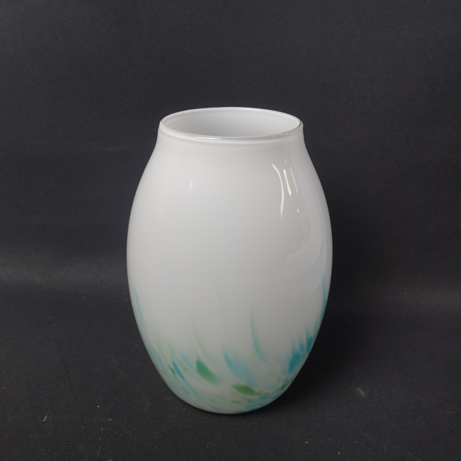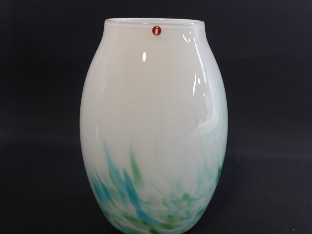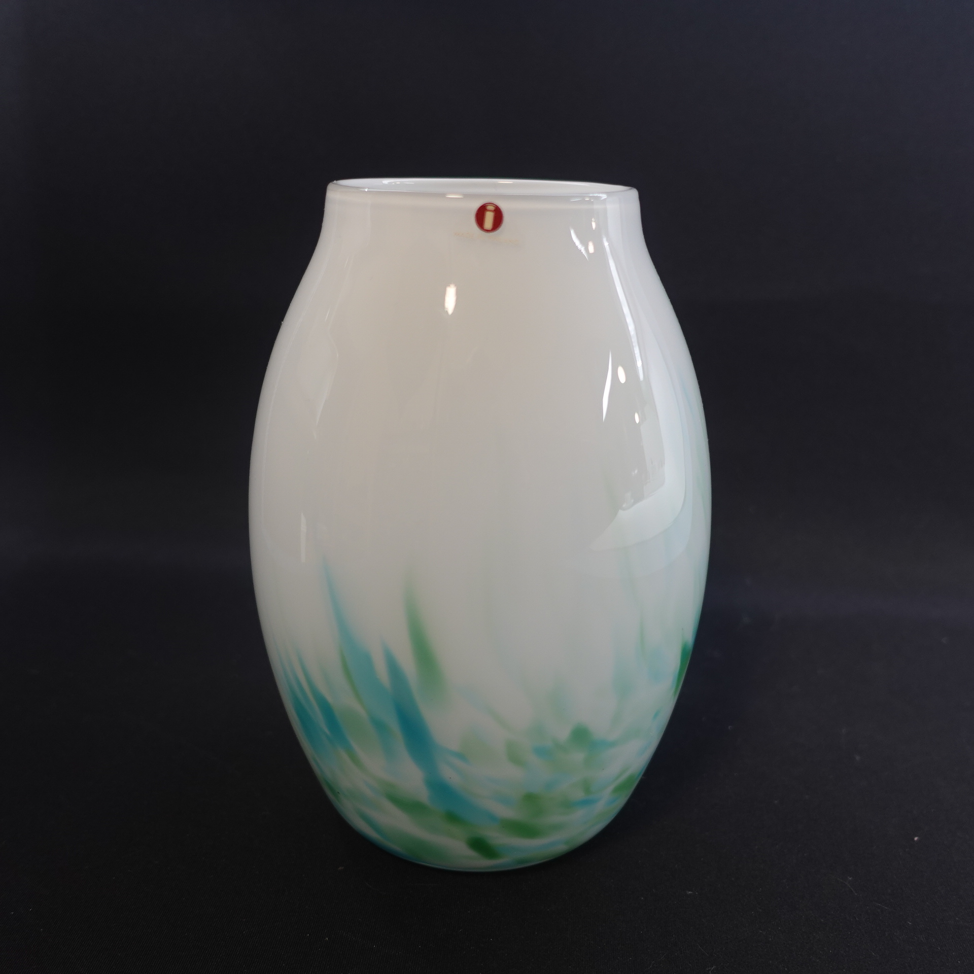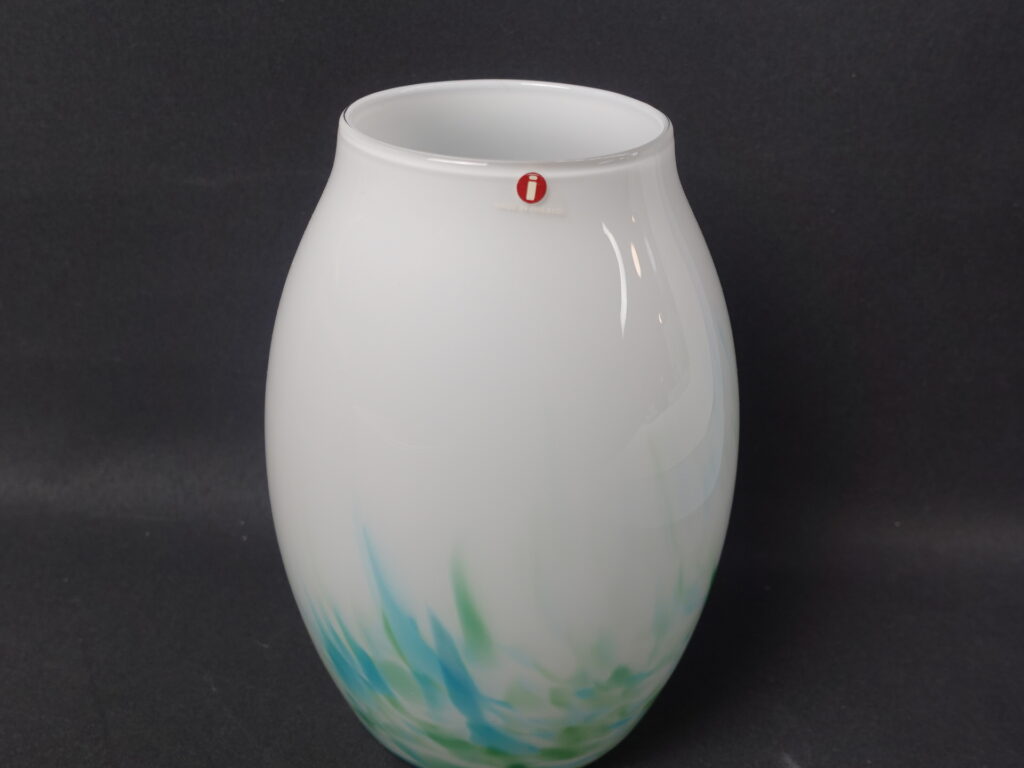 Mikko Karppasen Iittalalle suunnittelema sinivihreä Akvarelli maljakko. Maljakko oli tuotannossa v. 1985-86 ja sitä valmistettiin eri kokoja sekä muotoja. Maljakon korkeus on 17 cm ja suun halkaisija on 7,8 cm. Myynnissä oleva maljakko on ehjä, naarmuton ja muutenkin hyväkuntoinen.