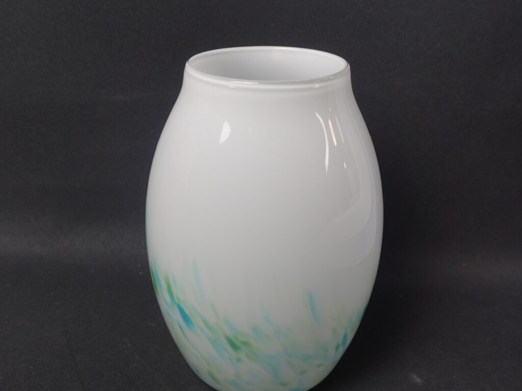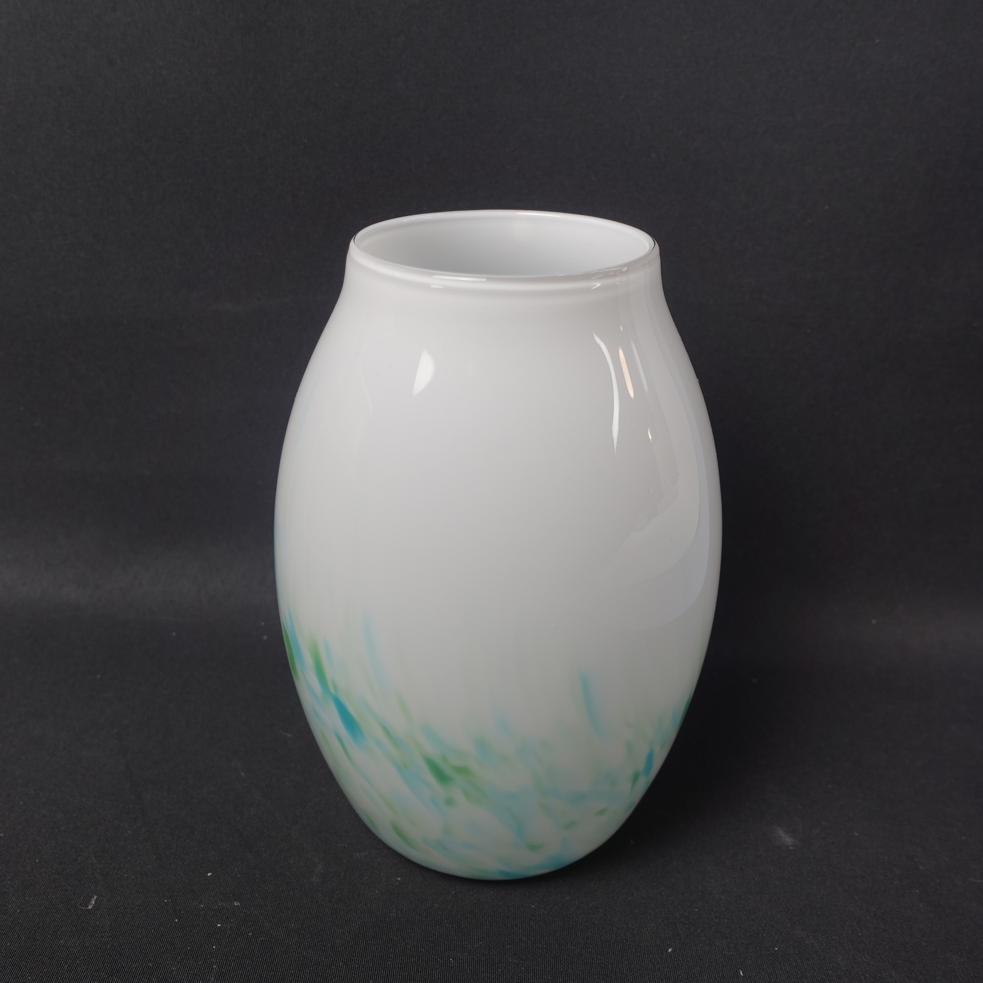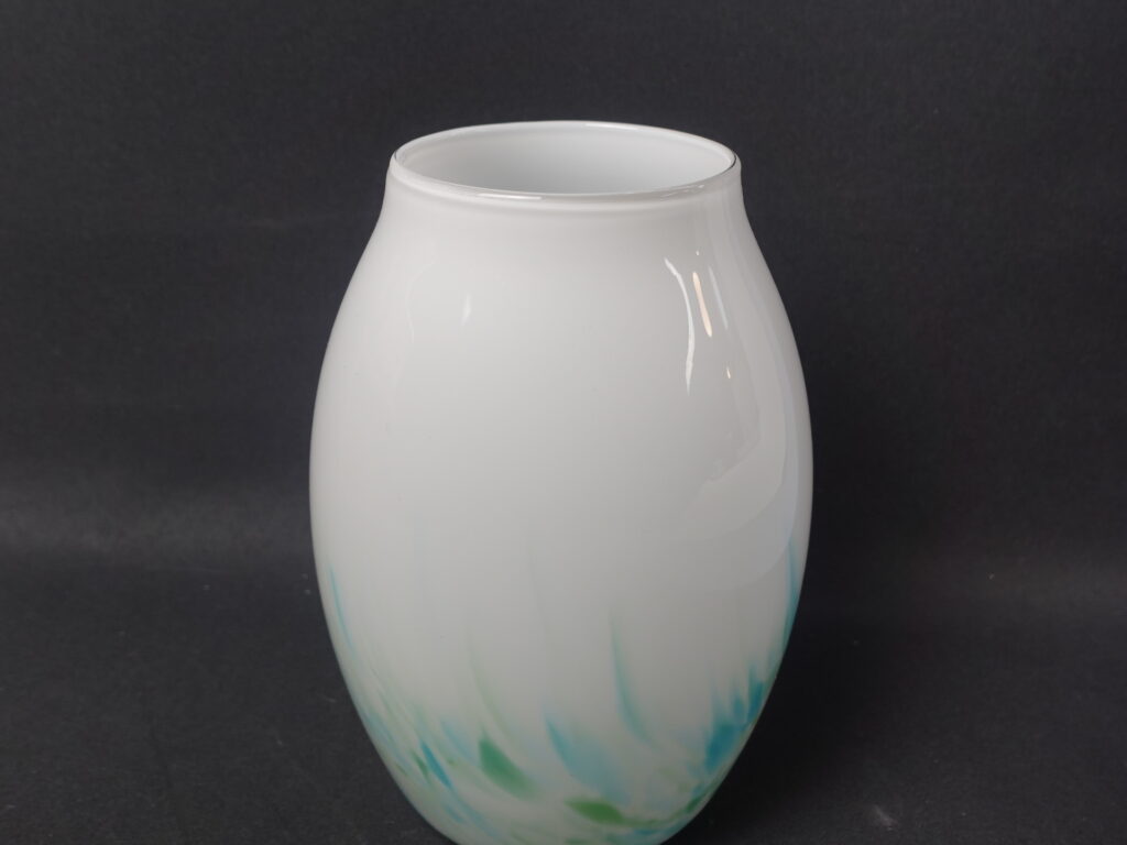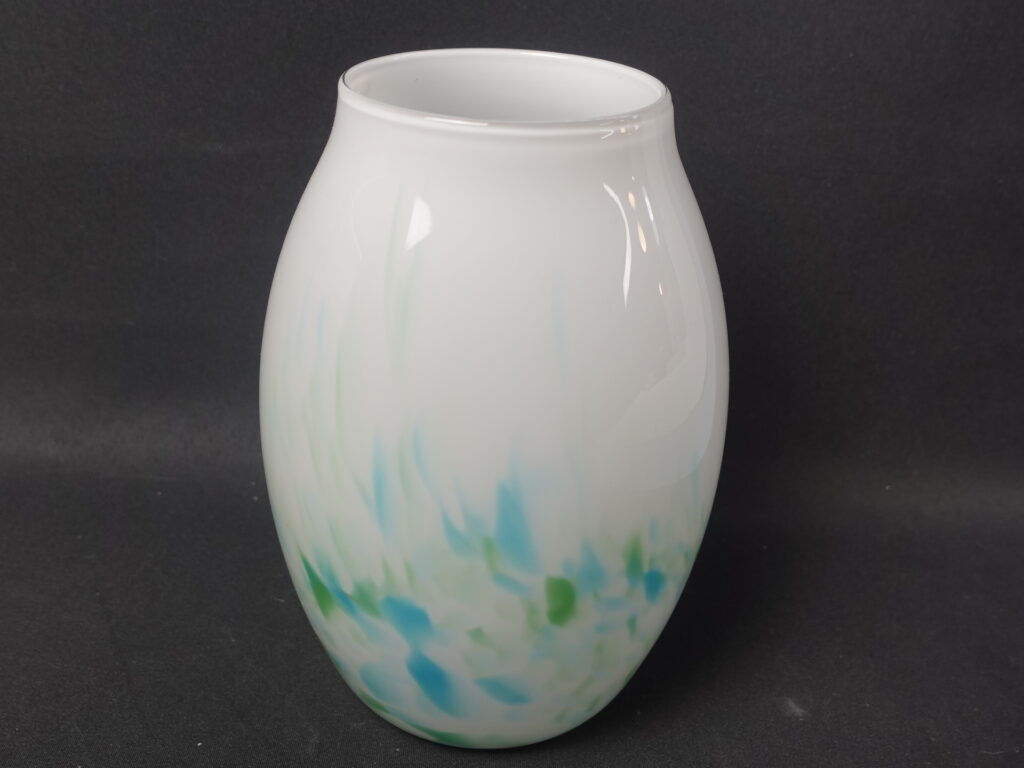 Mikko Karppasen Iittalalle suunnittelema sinivihreä Akvarelli maljakko. Maljakko oli tuotannossa v. 1985-86 ja sitä valmistettiin eri kokoja sekä muotoja. Maljakon korkeus on 17 cm ja suun halkaisija on 7,8 cm. Myynnissä oleva maljakko on ehjä, naarmuton ja muutenkin hyväkuntoinen.