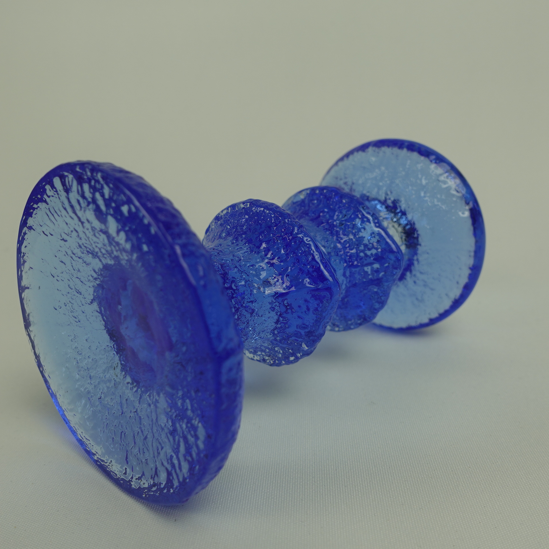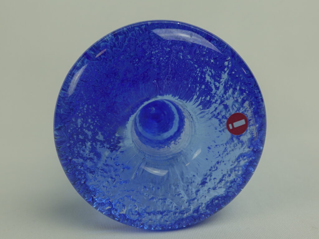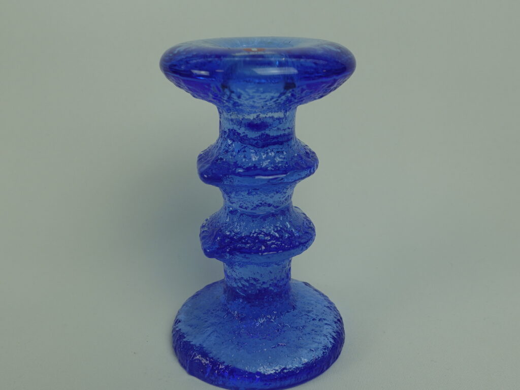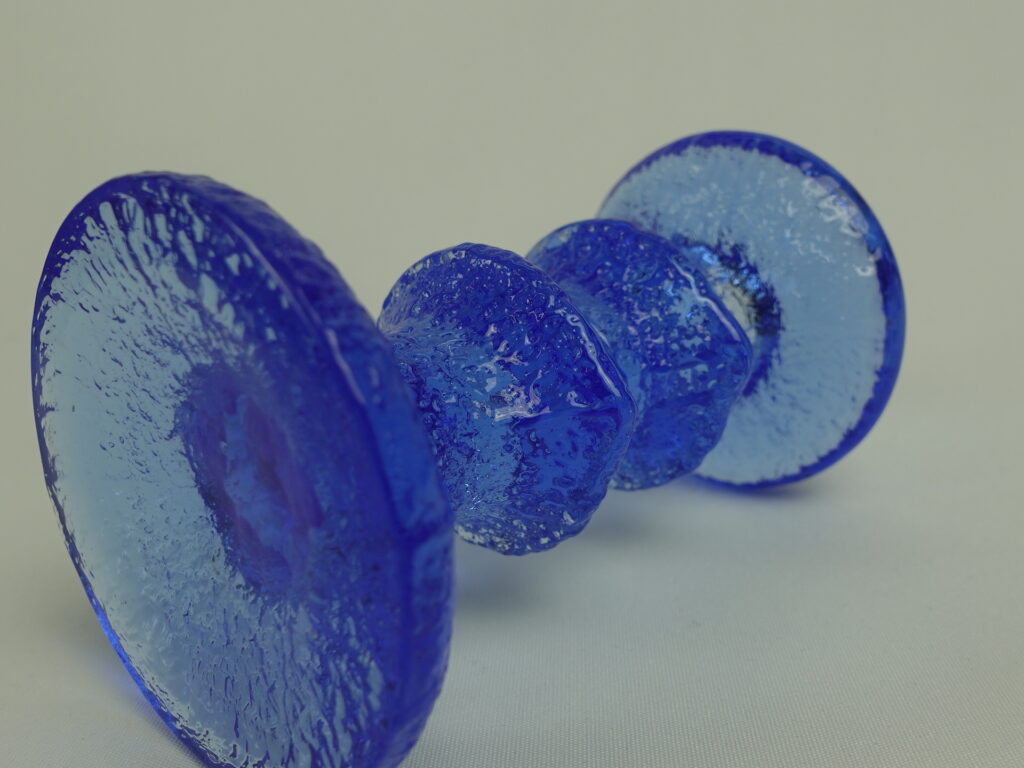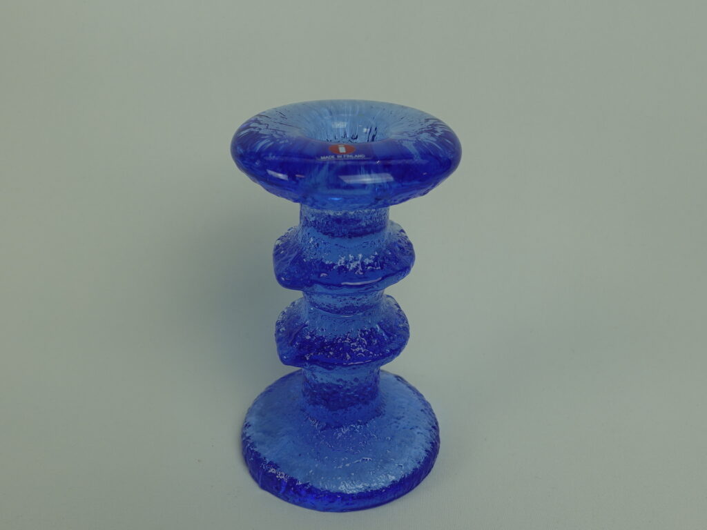 Timo Sarpanevan Iittalalle suunnitteleman Festivo-sarjan 2-solmuinen sininen kynttilänjalka. Sinisiä kynttilänjalkoja valmistettiin 1-,2- ja 3-solmuisina ainakin v. 1994 ja -95. Kynttilänjalan korkeus on 12,5 cm ja halkaisija 6,8 cm. Myynnissä oleva kynttilänjalka on ehjä ja muutenkin hyväkuntoinen, Iittalan tarrakin ovat vielä tallella.