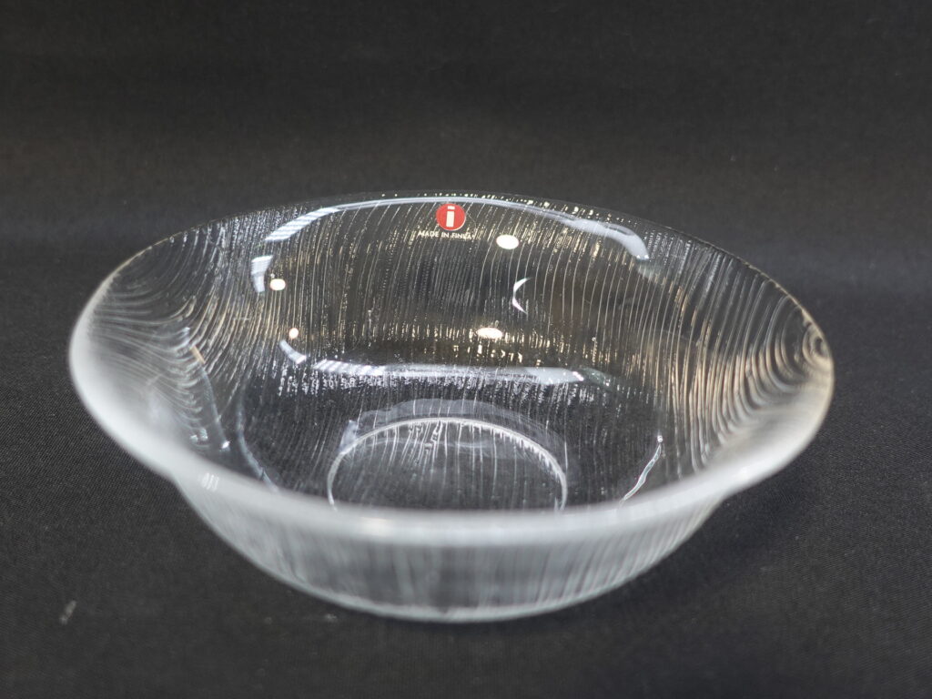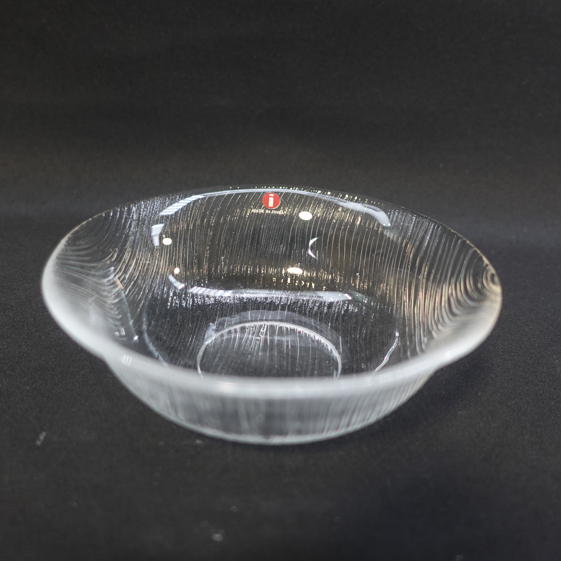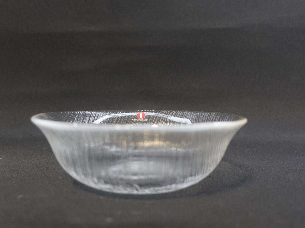 Jorma Vennolan Iittalan lasille suunnitteleman Maininki-sarjan annoskulho. Sarja oli tuotannossa v. 1978-79. Kulhon halkaisija on 12,5 cm, korkeus 4 cm ja tilavuus 20 cl. Myynnissä olevat kulhot ovat ehjiä ja käyttämättömiä.