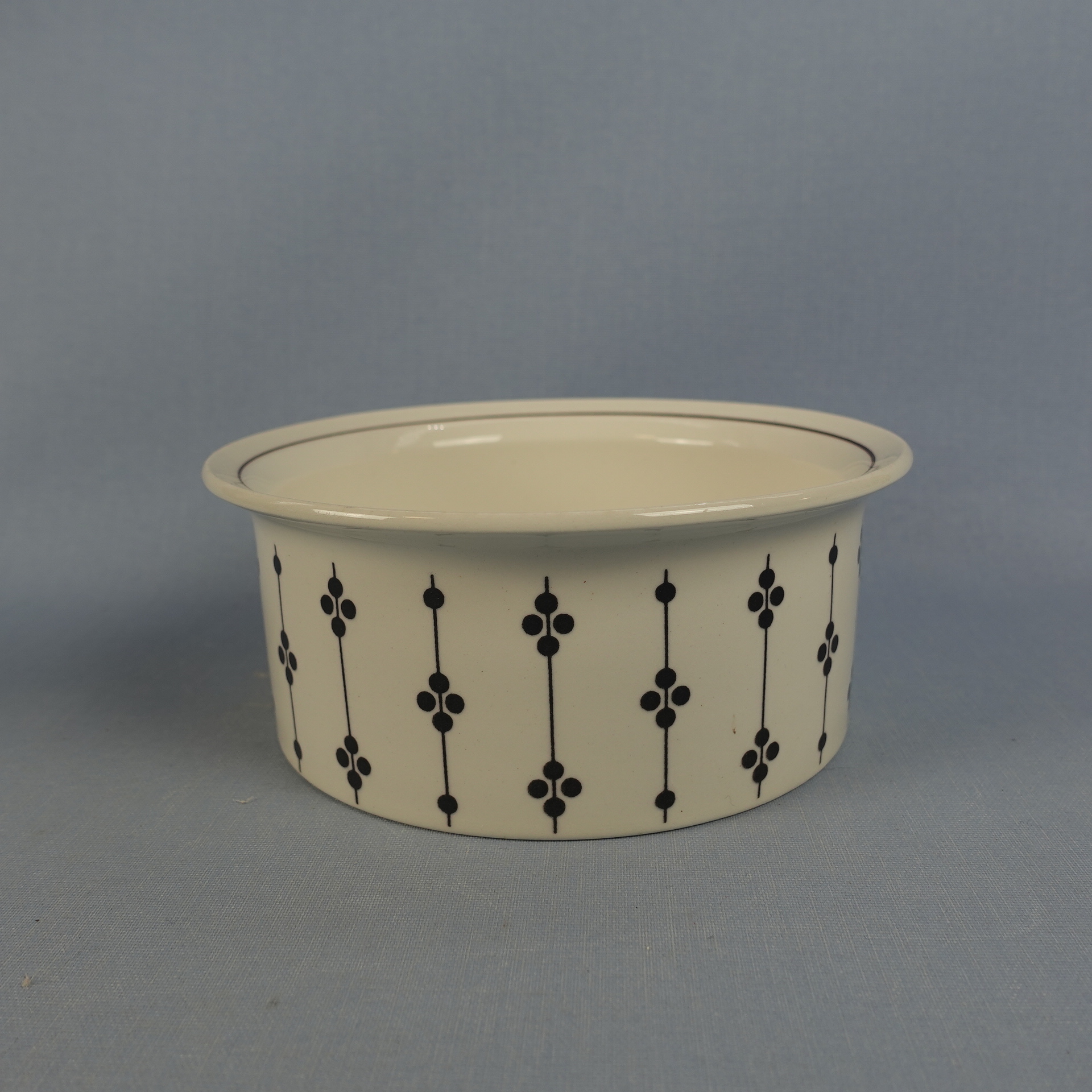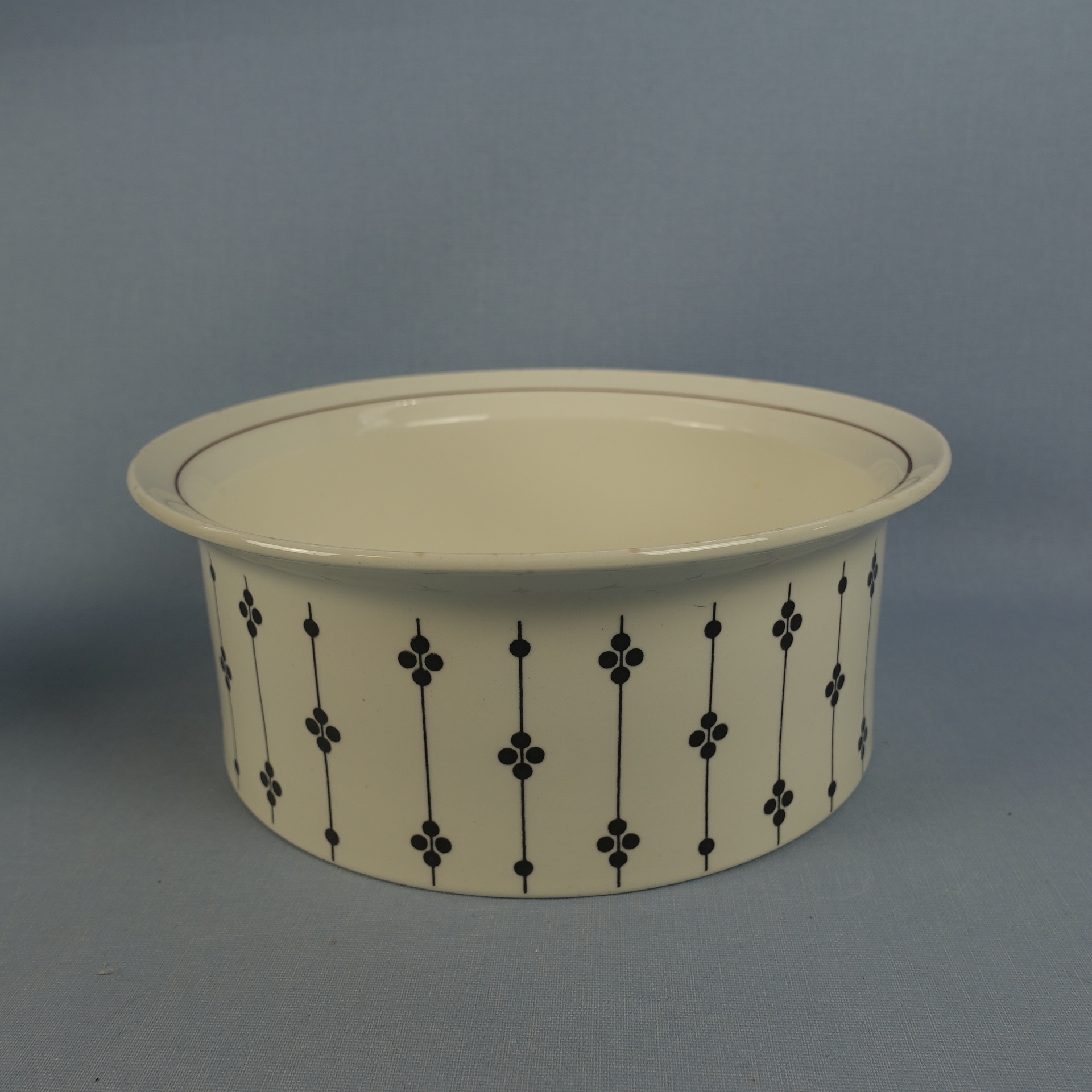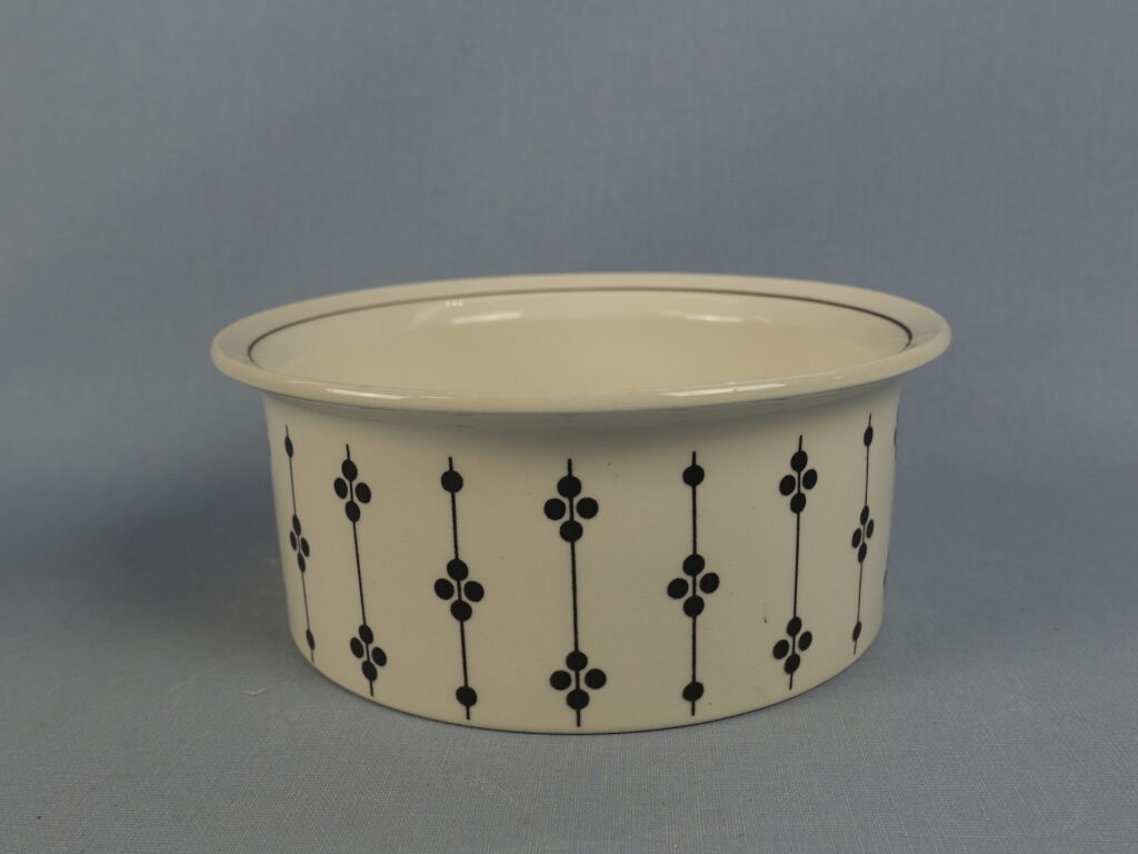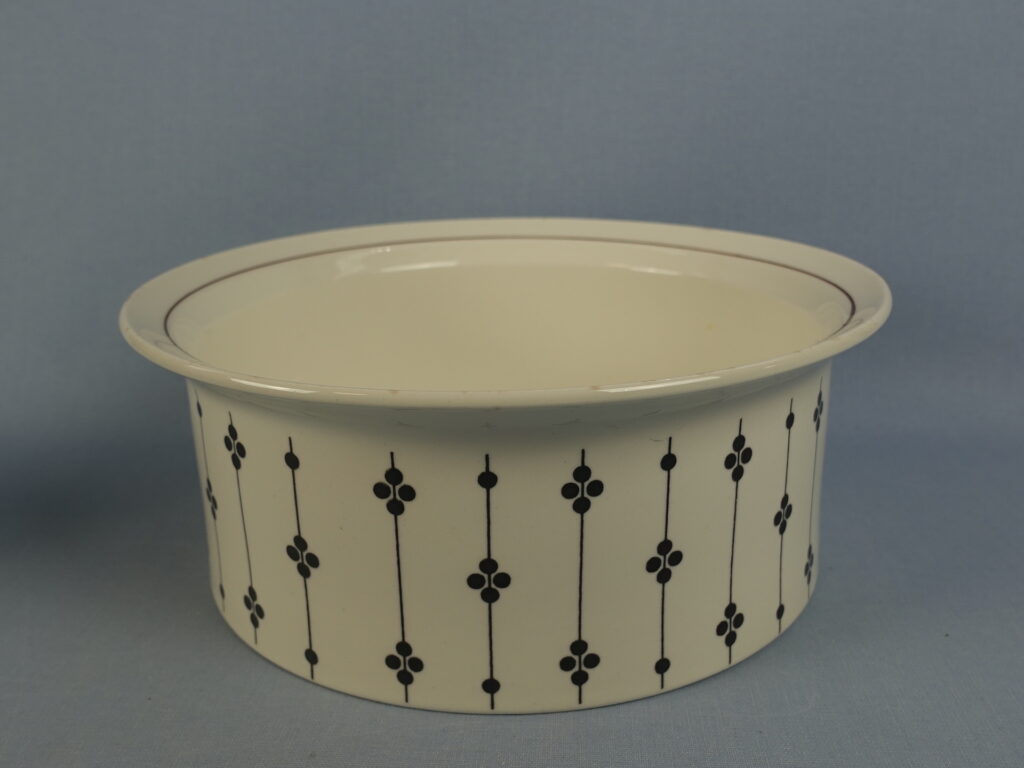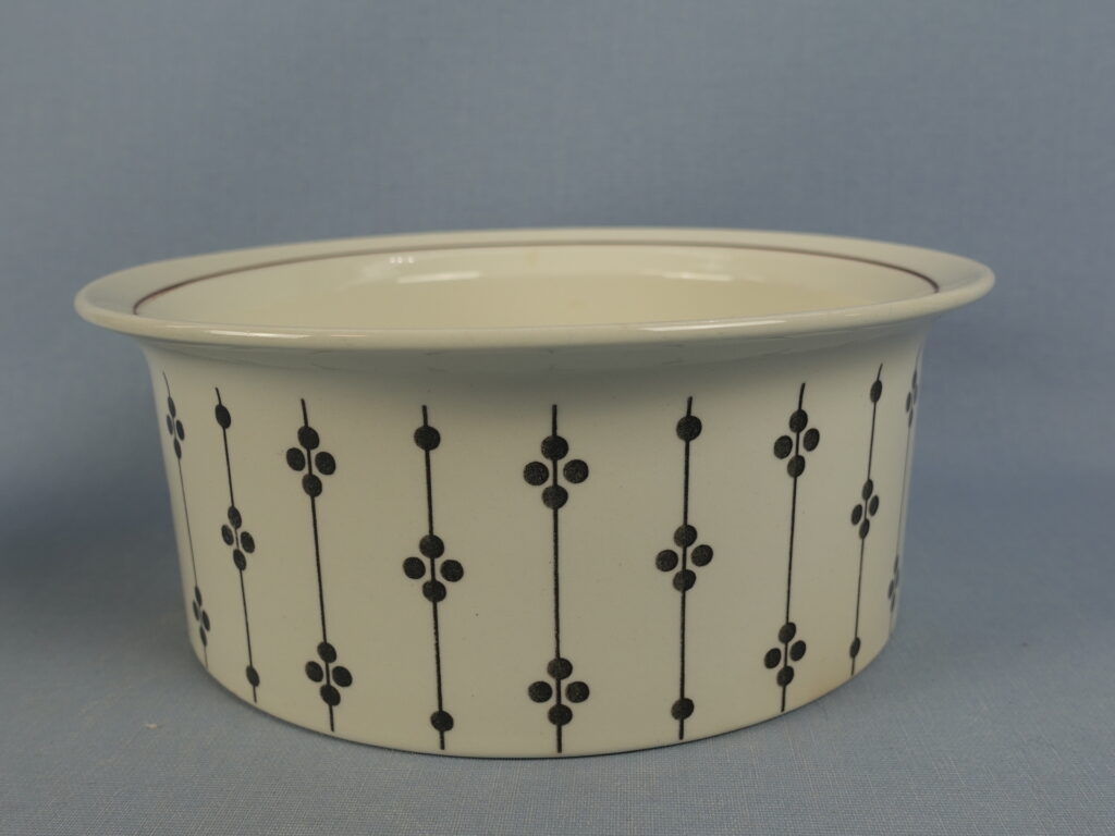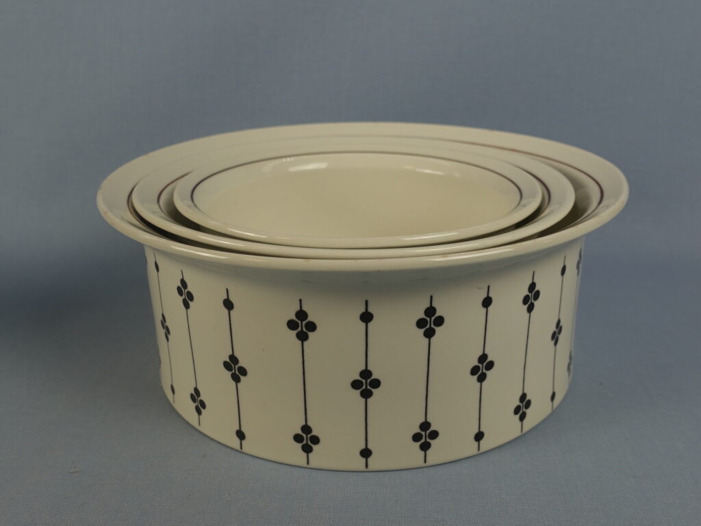 Esteri Tomulan Arabialle suunnitteleman Kartano-sarjan erikokoiset tarjoilukulhot ja -vati. Koriste oli tuotannossa Peter Winquistin suunnittelemissa EH-mallin astioissa v. 1973-76. Myynnissä olevat vadit ja kulhot ovat ehjiä ja muutenkin hyväkuntoisia. Isoimman kulhon reunassa käytöstä tullutta kulumaa.