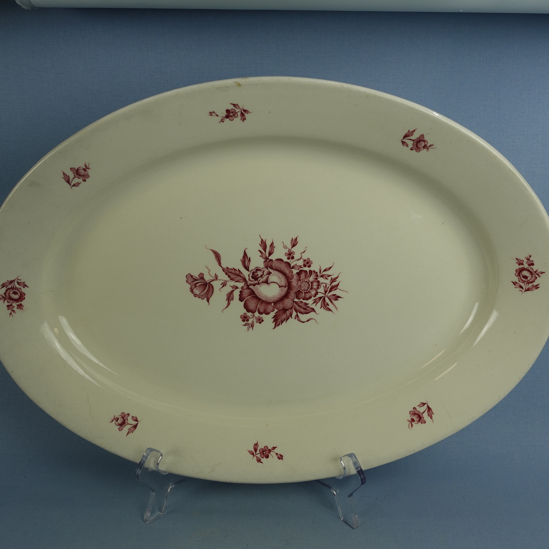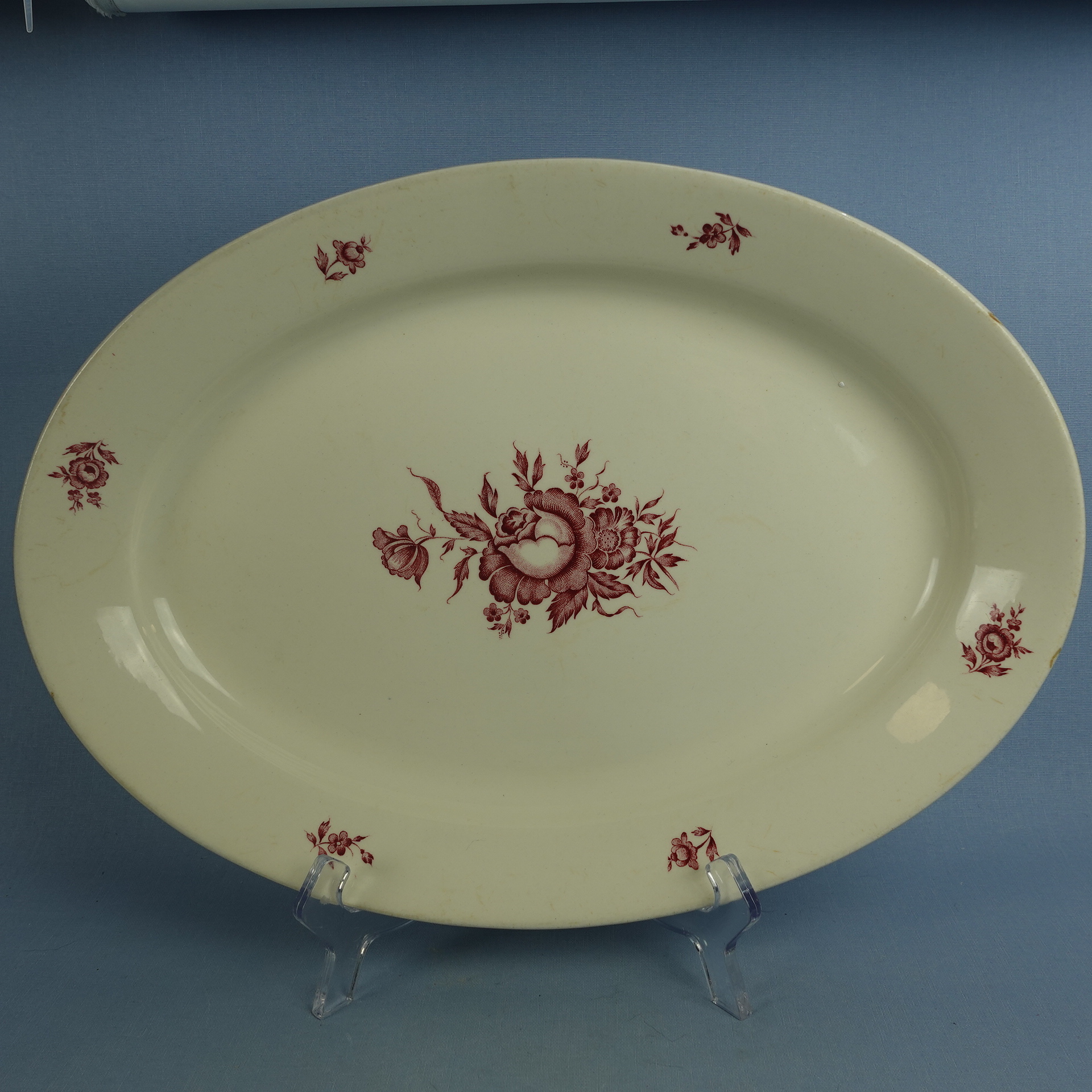 Robert Nystedin Arabialle suunnitteleman Kolme ruusua-sarjan erikokoiset tarjoiluvadit ja kulho. Koriste oli tuotannossa v. 1946-54. Se oli käytössä mm. Väestöliiton avustuspaketteihin kuuluneissa astioissa. Myynnissä olevat vadit ja kulho ovat käytettyjä, mutta ehjiä ja muutenkin hyväkuntoisia.