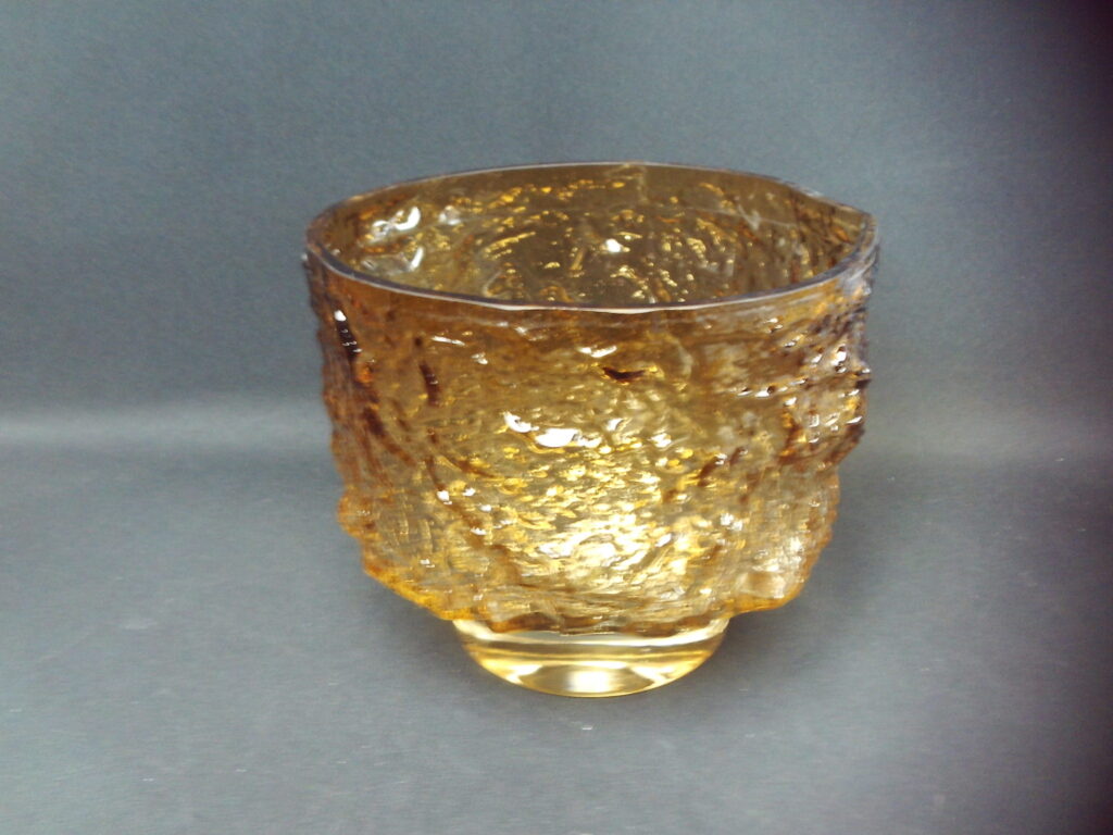 Kaj Blomqvistin Kumela Oy:lle suunnittelema ruskea lasimalja. Maljan korkeus on 15 cm ja halkaisija 18 cm. Malja on signeerattu: Kaj Blomqvist Kumela. Myynnissä oleva malja on ehjä ja muutenkin hyväkuntoinen.