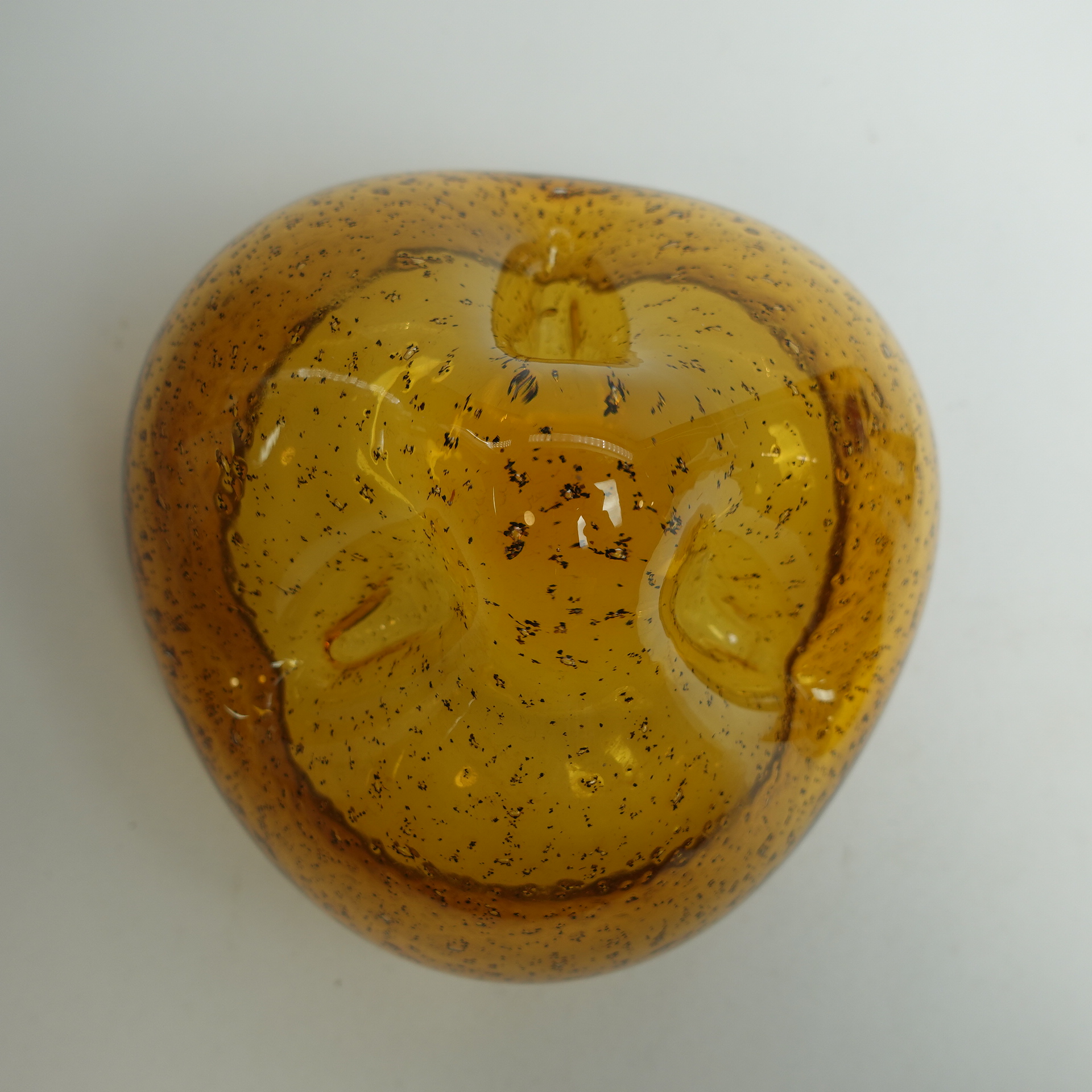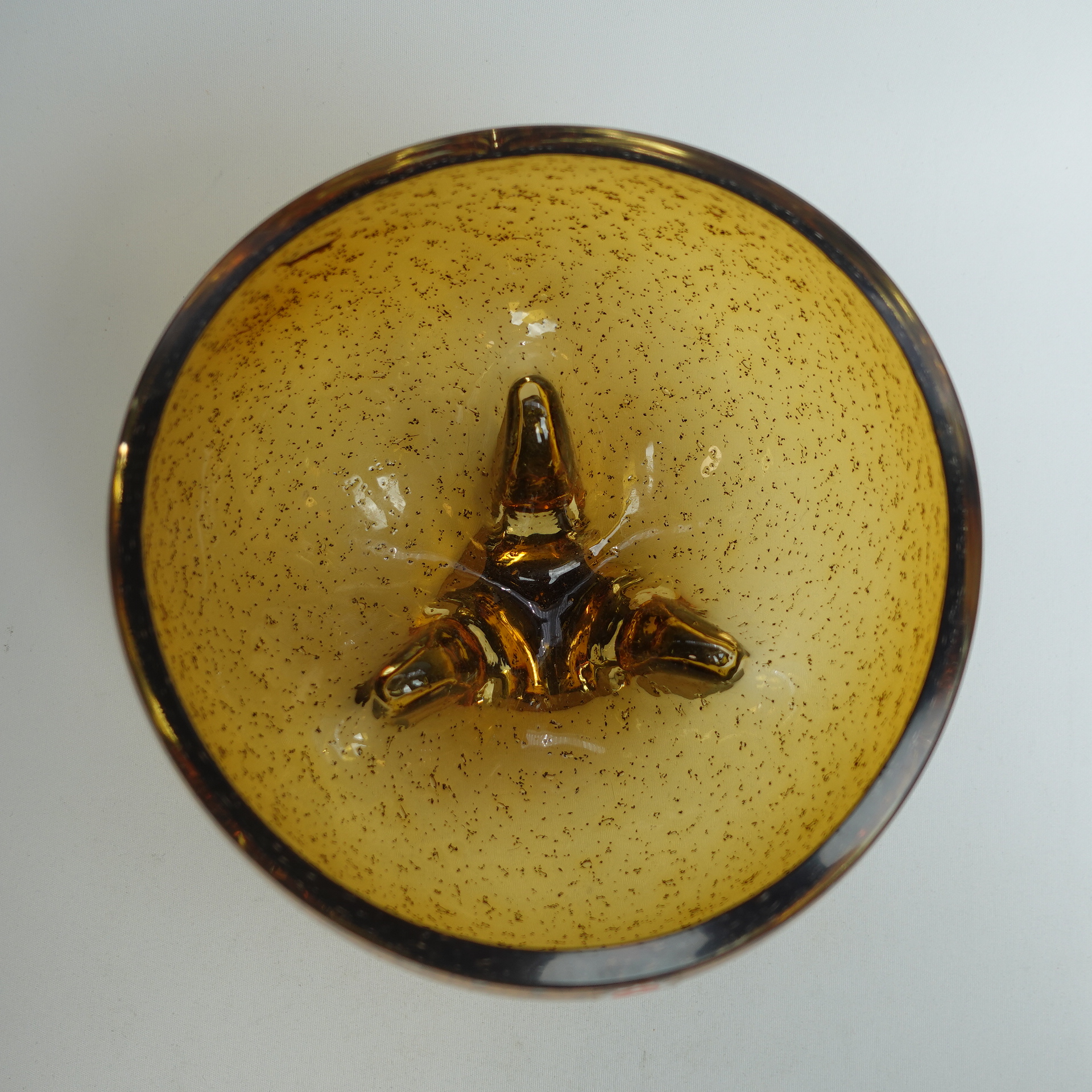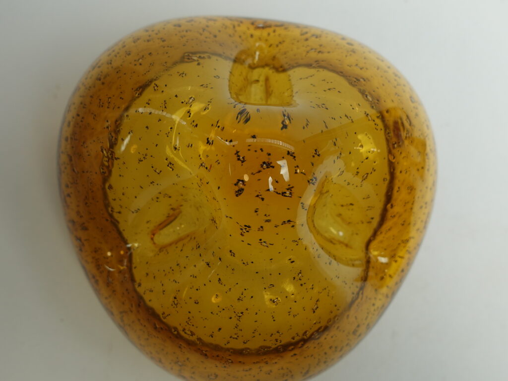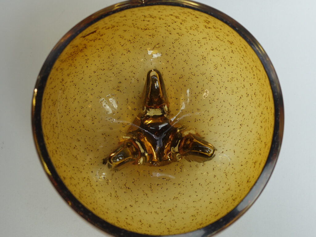 Kumelan/Humppilan lasi valmistama ruskea taidelasimalja Karl Laineen suunnittelemalla jykevällä pronssijalalla. Malja lienee 1970/-80-luvun tuotantoa. Maljan korkeus jalan kanssa 13,5cm ja halkaisija 15,5 cm. Myynnissä oleva malja on ehjä ja muutenkin hyväkuntoinen.