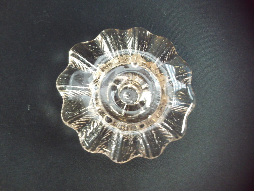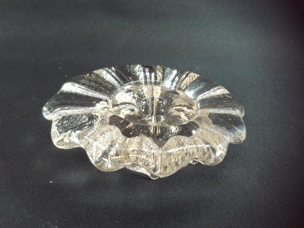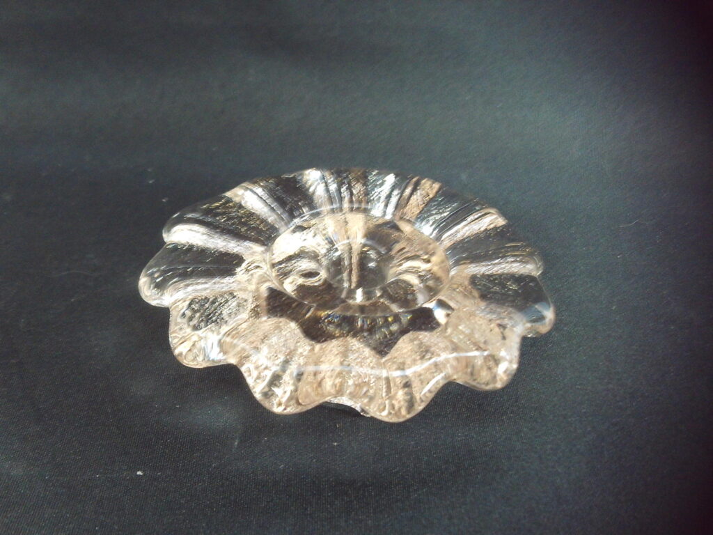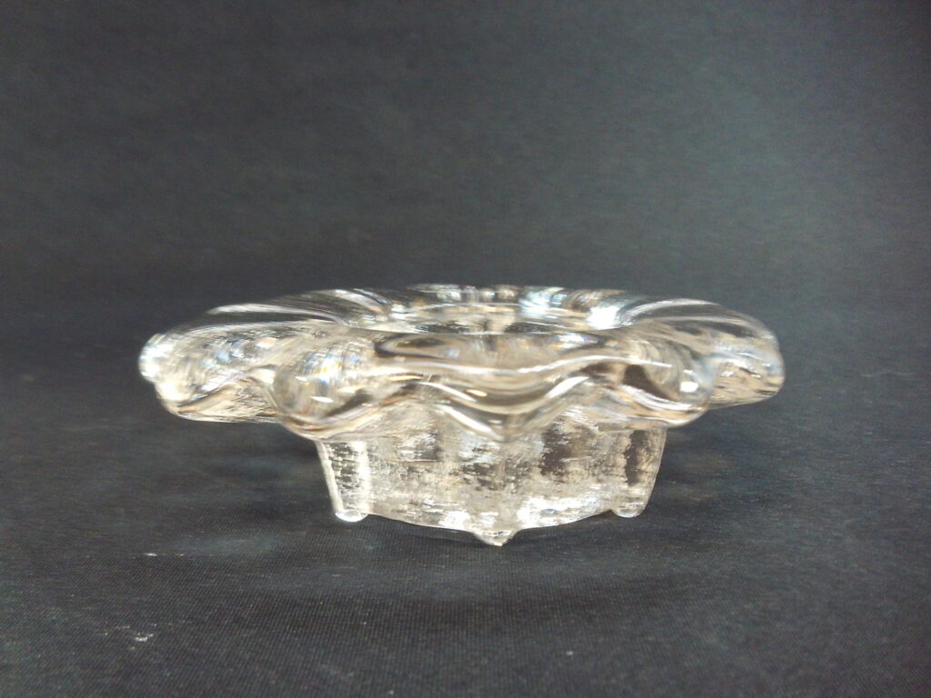 Muurlan lasin valmistama tähdenmuotoinen kynttilänjalka. Kynttilänjalan halkaisija on 11 cm ja korkeus 3 cm, kynttilänreikä 1,8 cm. Toinen kynttilänjaloista on kirkas, toinen väriltään vähän rosahtava. Kynttilänjalat ovat ehjiä ja muutenkin hyväkuntoisia.