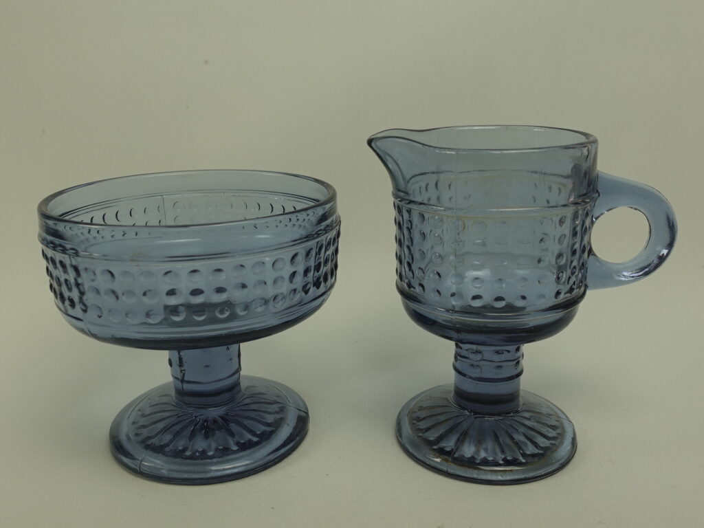 Erkkitapio Siiroisen Riihimäen lasille suunnitteleman Barokki-sarjan neodymi sokerikko ja kermakko. Sarja oli tuotannossa v. 1966-69 ja sitä valmistettiin useissa väreissä. Sokerikon korkeus on 9,3 cm, halkaisija 10 cm ja tilavuus 20 cl. Sokerikkoa käytetään myös jalallisena annoskulhona. Kermakon korkeus on 11 cm, halkaisija 6,8 cm ja tilavuus 10 cl. Myynnissä olevat sokerikko ja kermakko ovat ehjiä ja muutenkin hyväkuntoisia. Ne myydään erillisinä tuotteina.