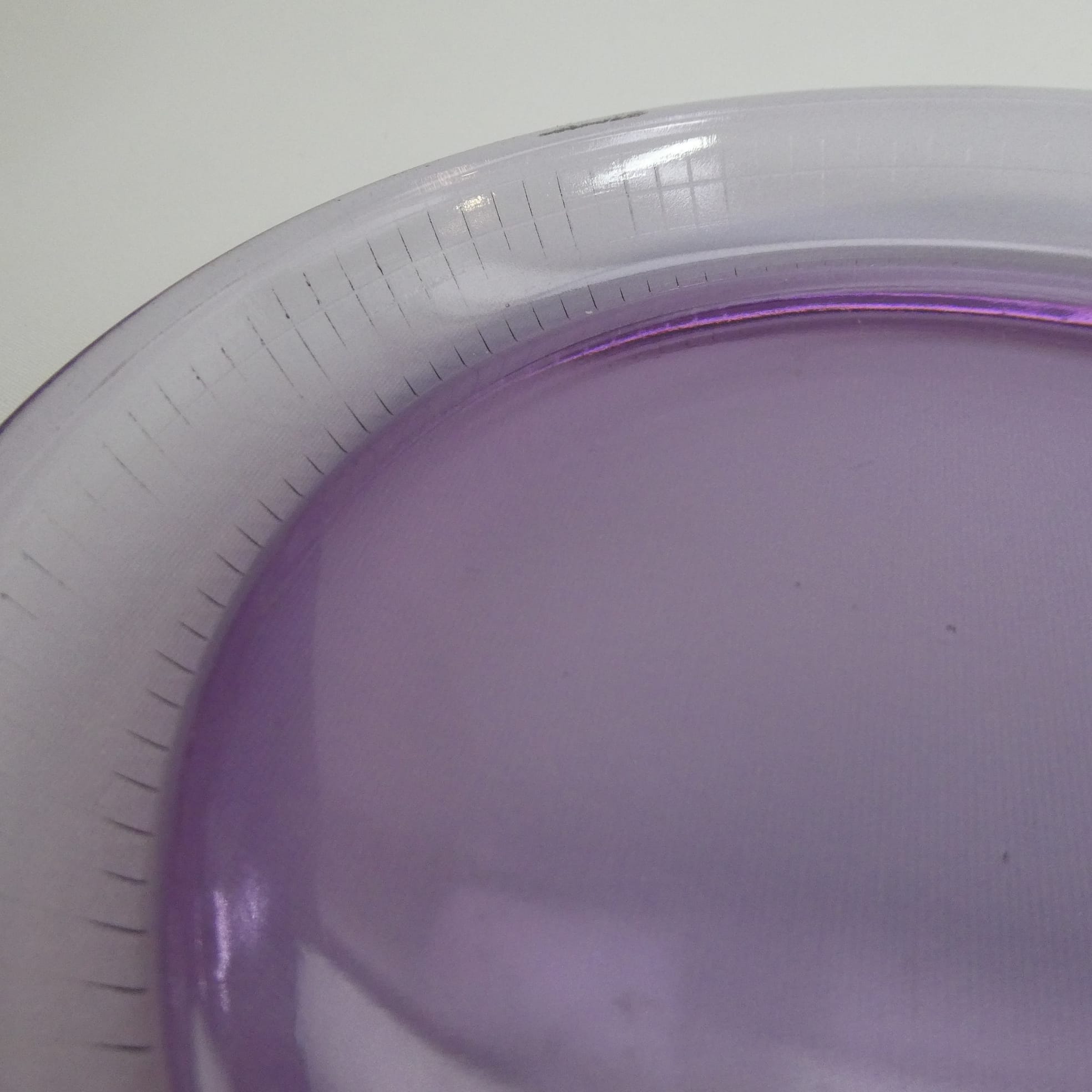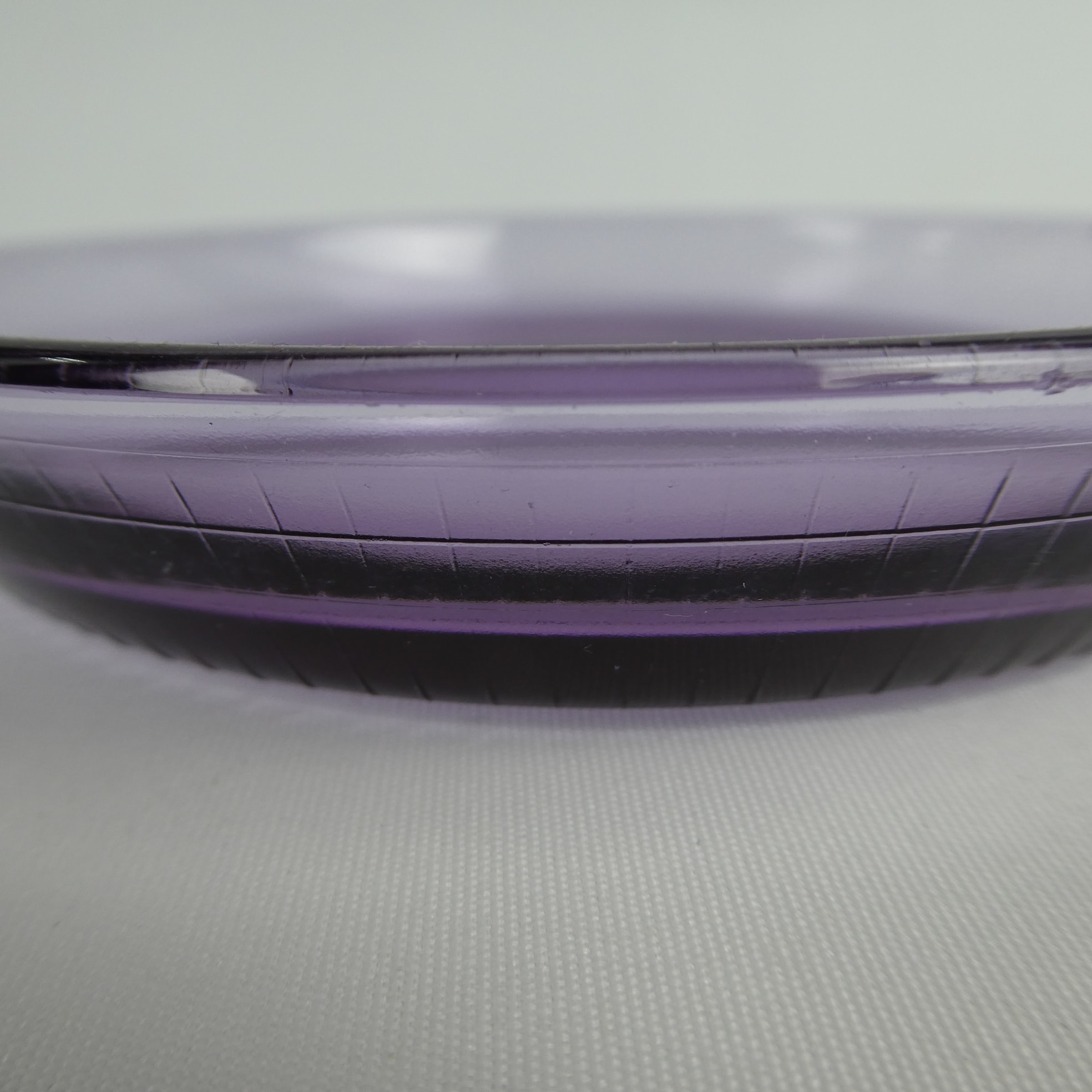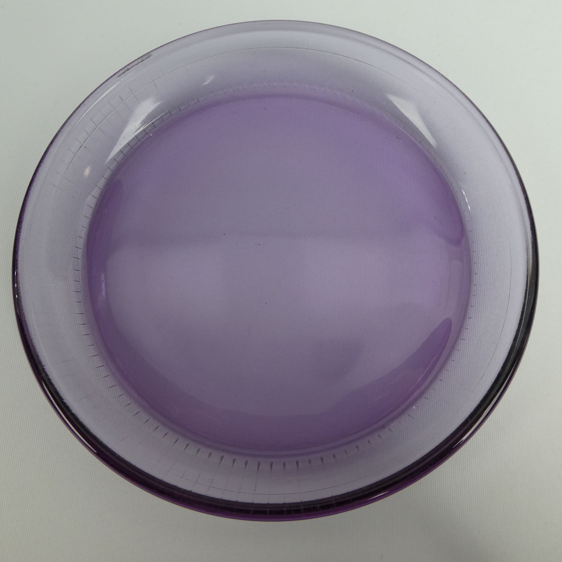 Helena Tynellin Riihimäen lasille suunnitteleman Ruutu sarjan neodyymin väriset lautaset. Sarja oli tuotannossa eri väreissä v. 1967-68. Lautasten halkaisija on 14 cm ja reunan korkeus on 2 cm. Lautaset ovat ehjiä, mutta vähäisiä naarmuja on nähtävissä.