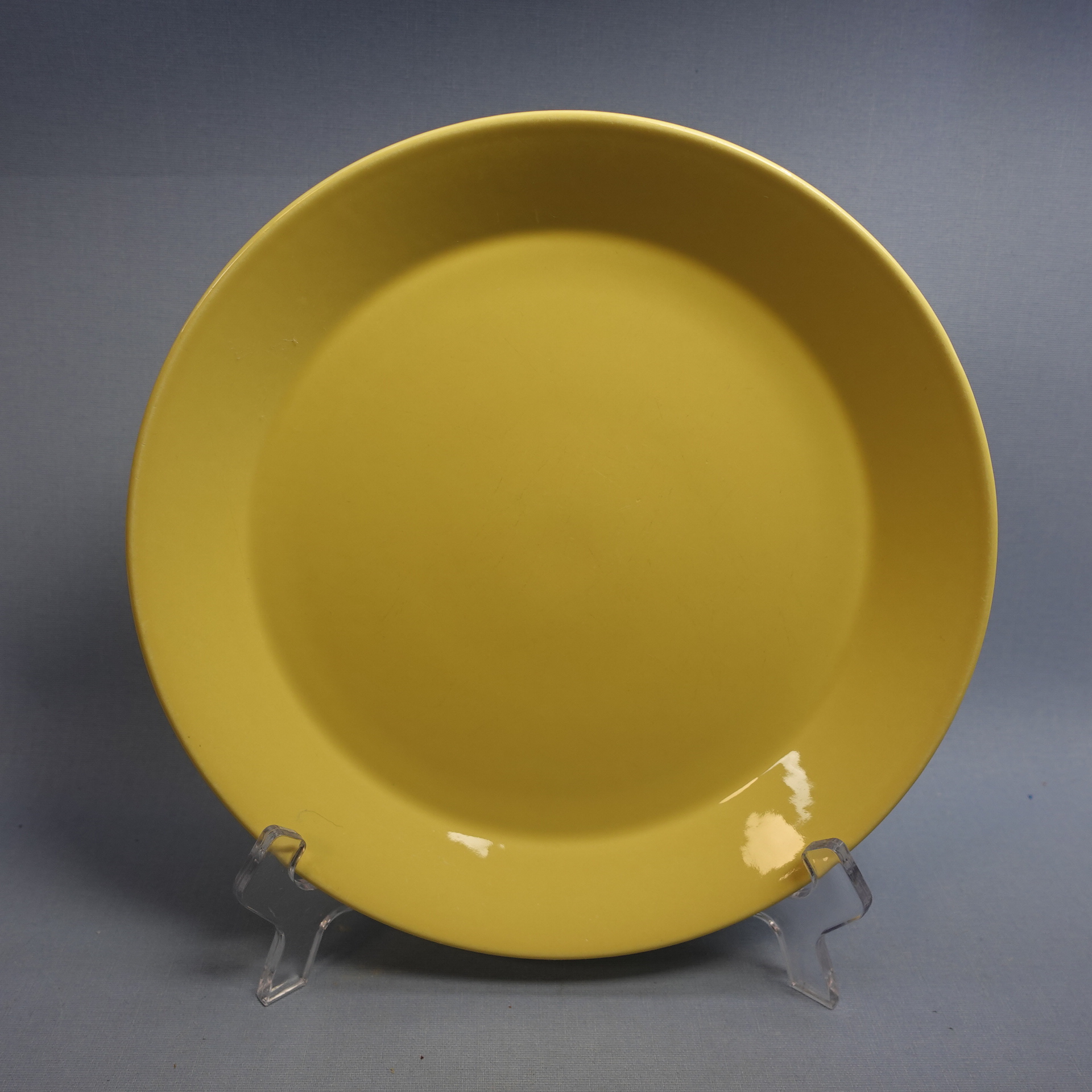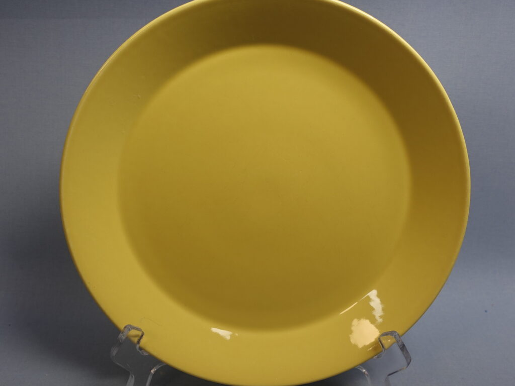 Yellow plates in various sizes from the Teema series originally designed by Kaj Franck for Arabia. The yellow color was in production 1991–2008. The plates for sale are intact and in good condition, almost unused. Some of the 26 cm plates have an i-sticker.