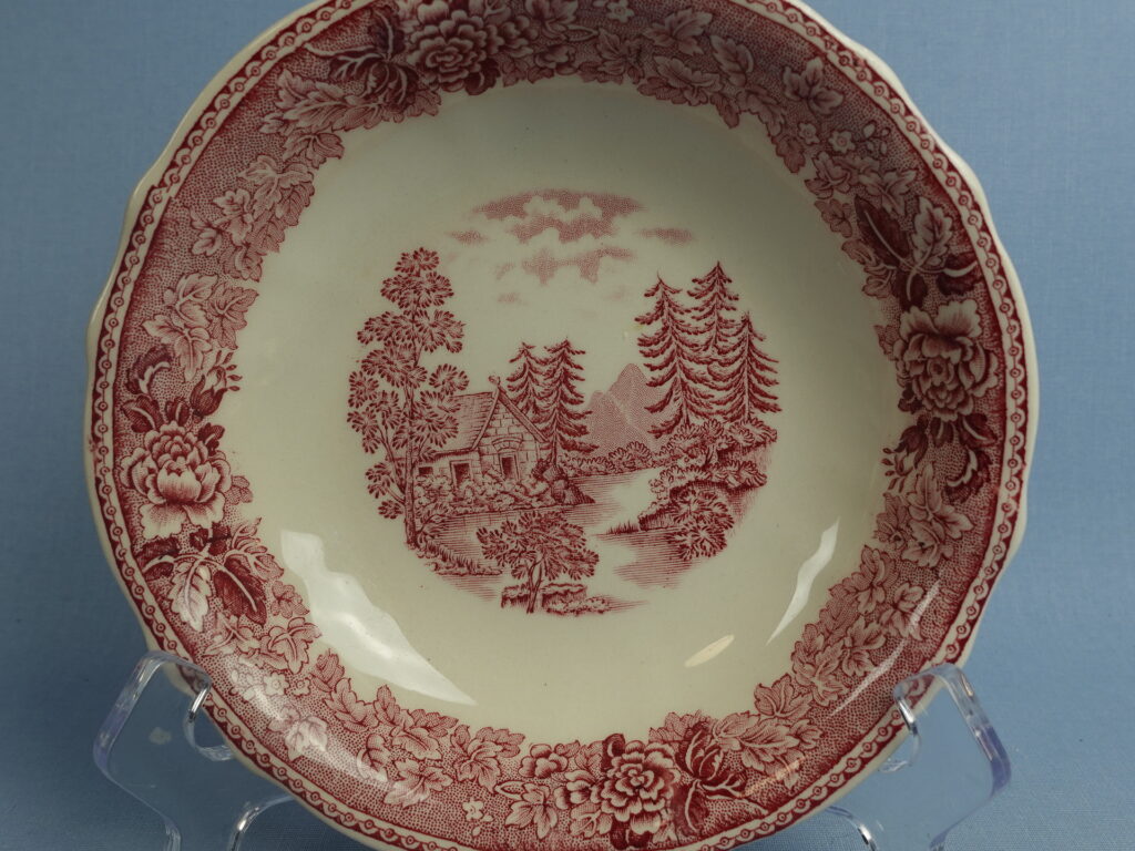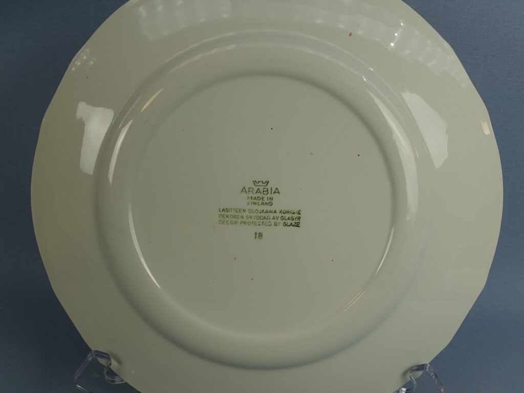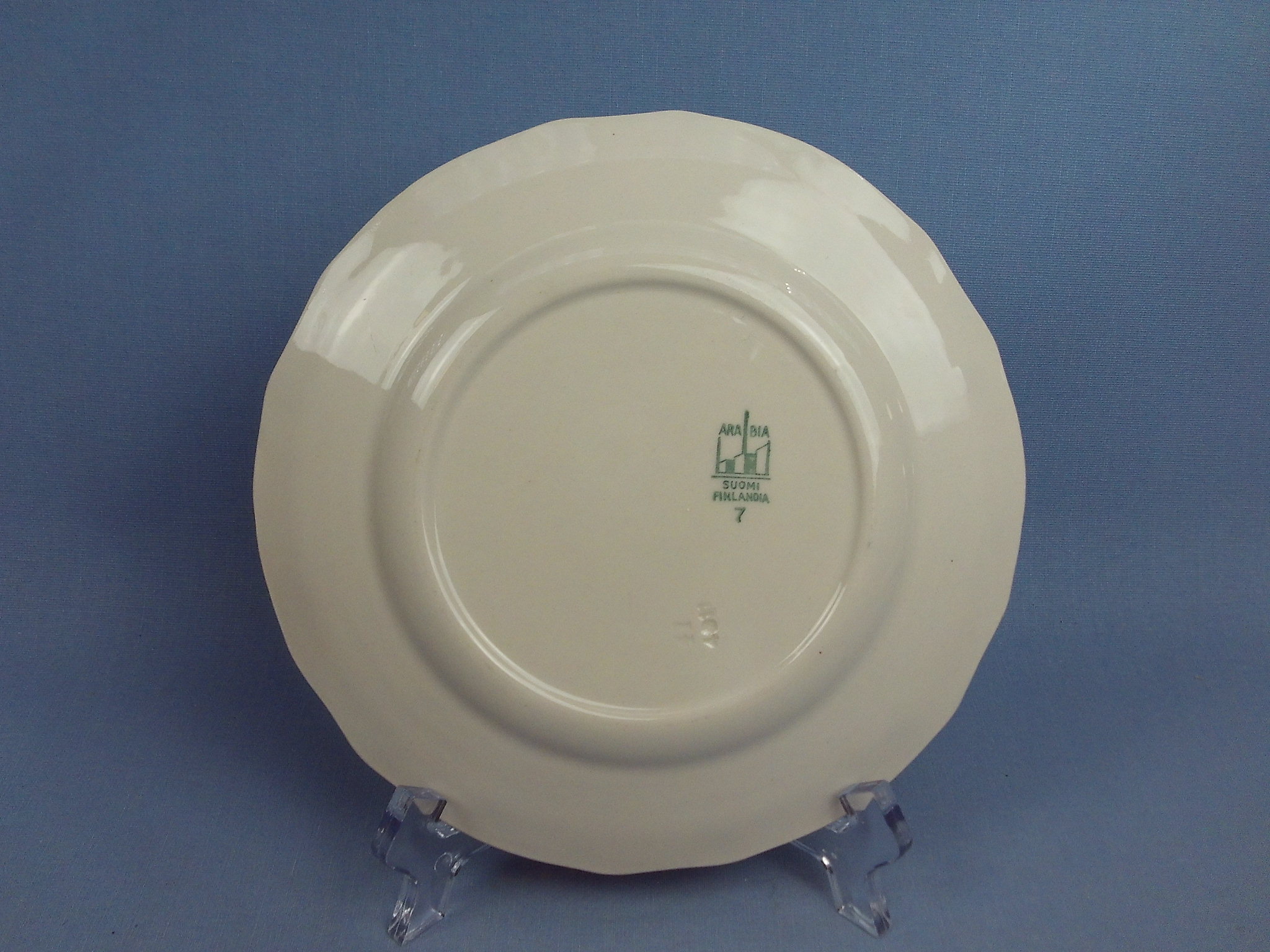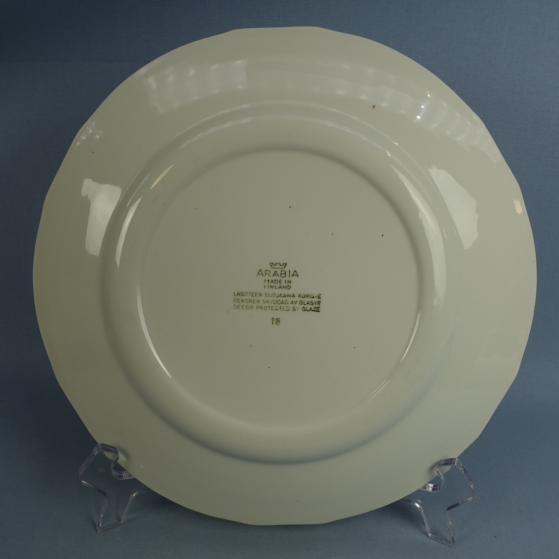 Various-sized plates from the red Maisema series made by Arabia. The decoration was produced on AS-model pieces in two periods: 1941–54 and 1964–65. The plates for sale are intact and otherwise in good condition.