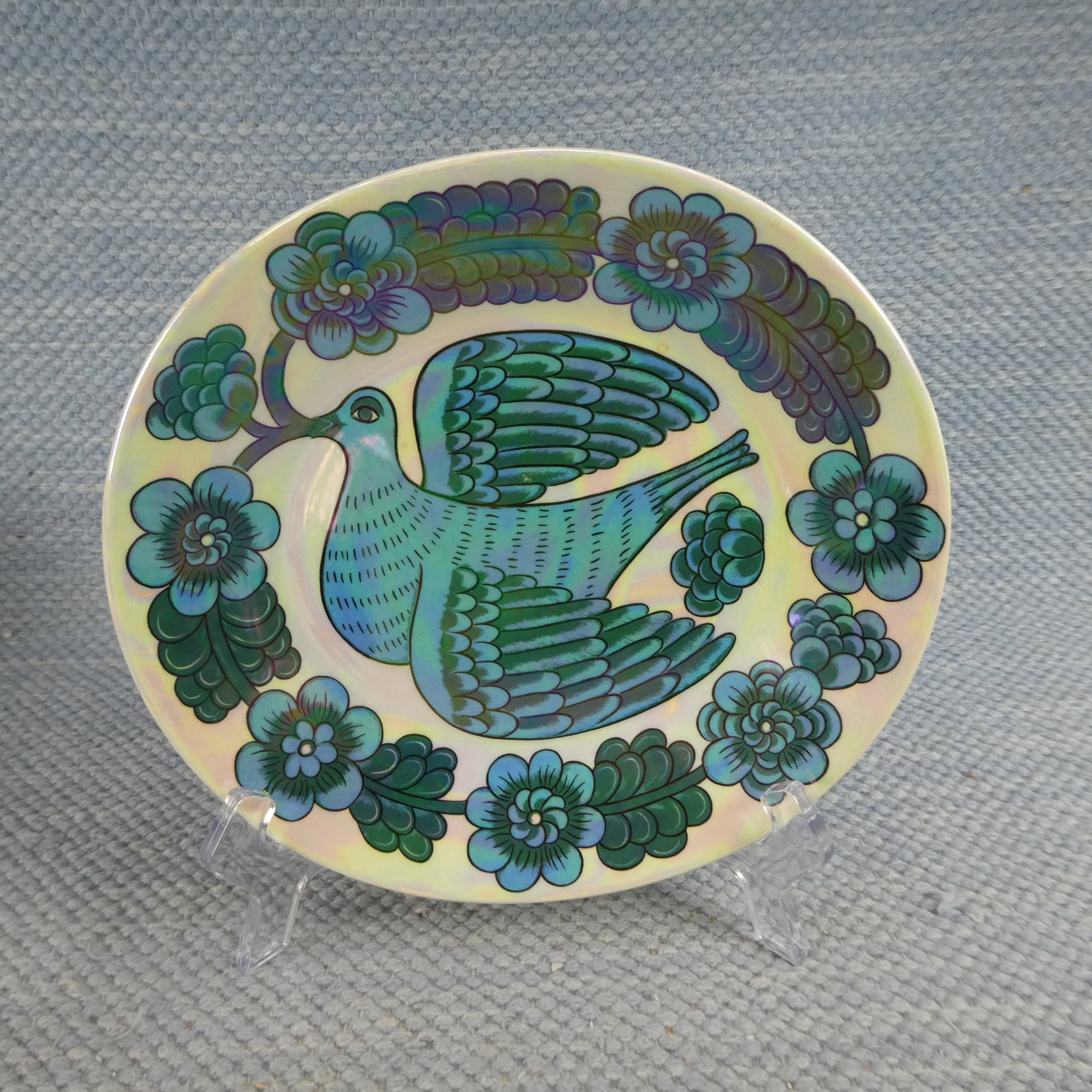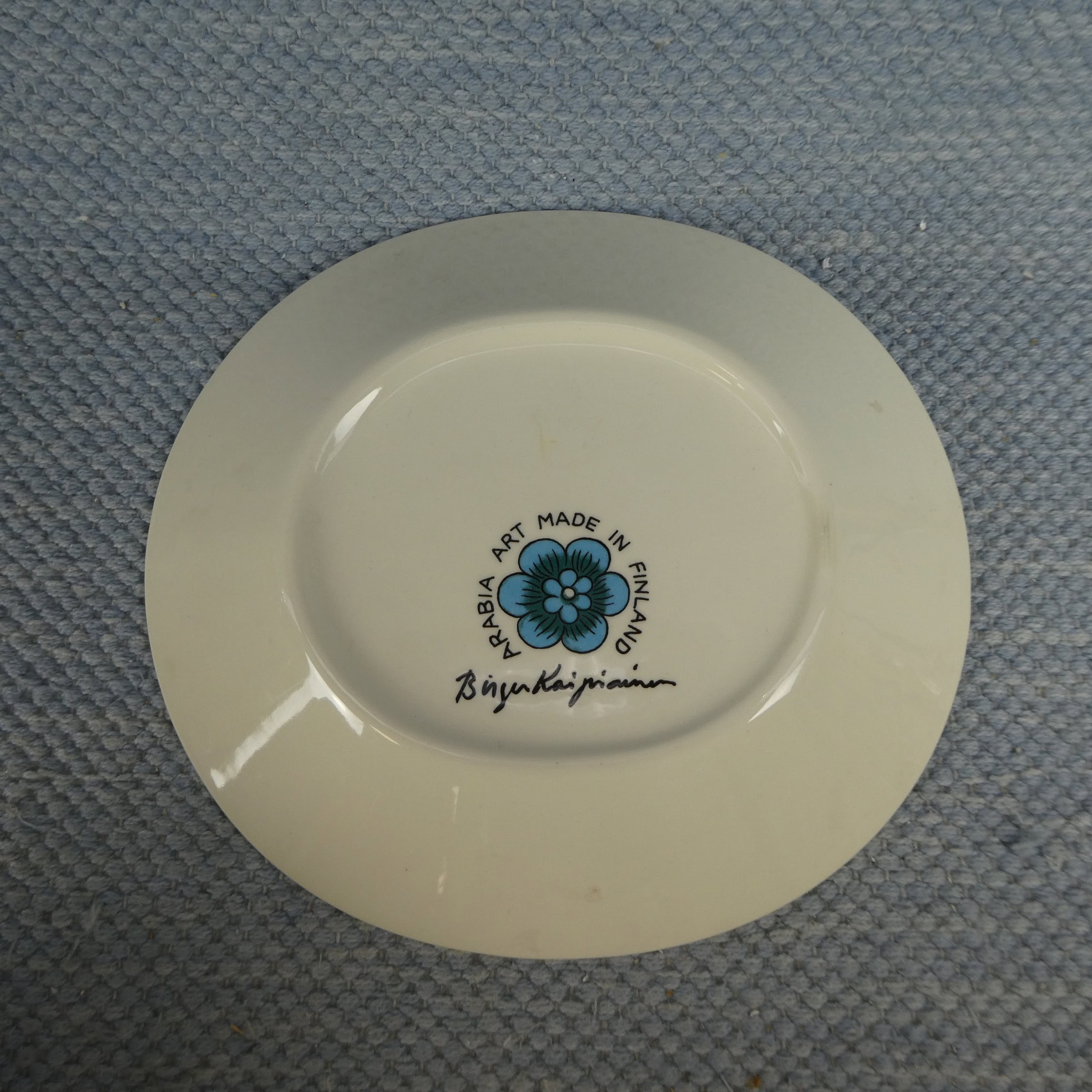 Arabia Birger Kaipiainen art ceramic plate Kyyhky. The plate size is approximately 21 cm x 19.5 cm. The art ceramic plate is intact and otherwise in good condition.