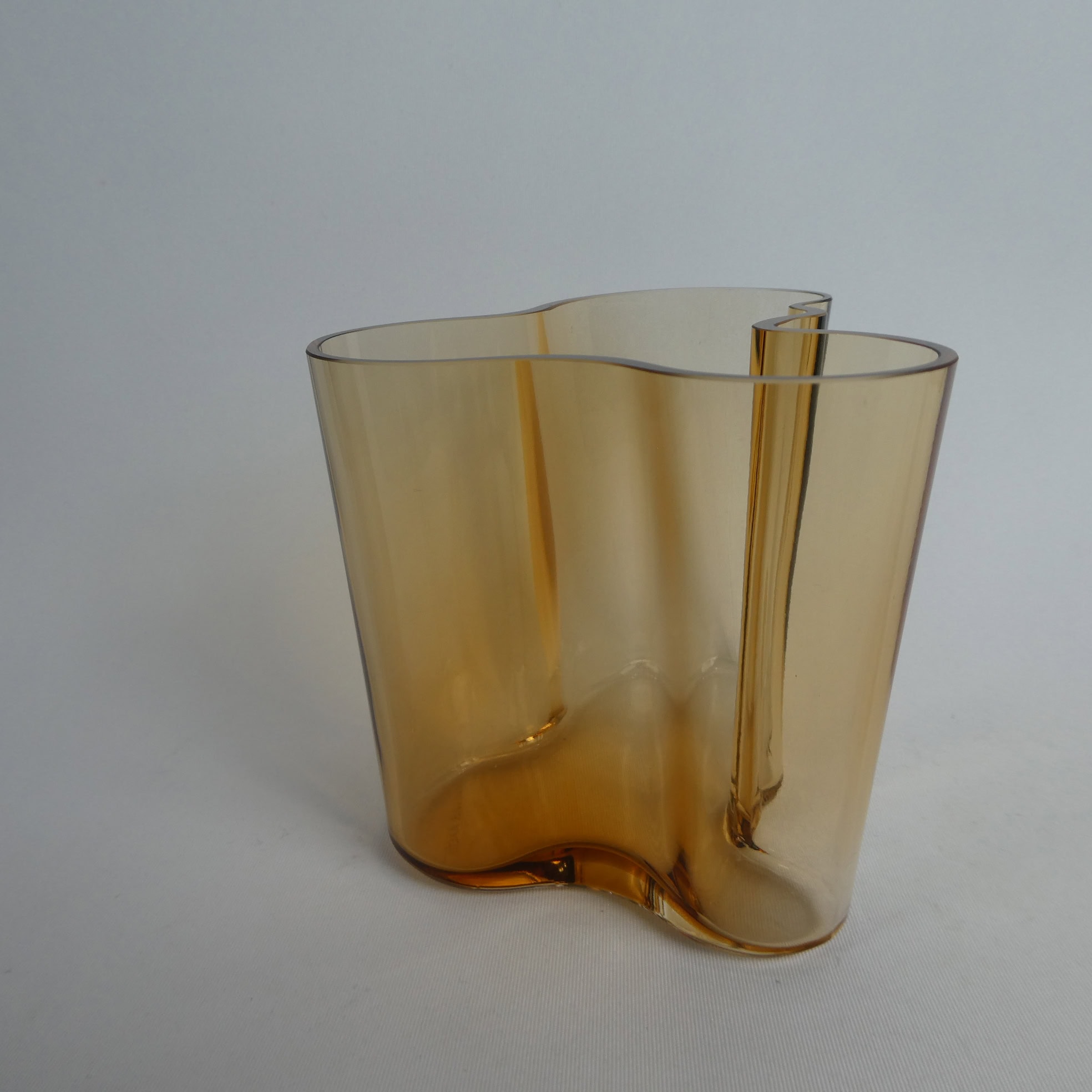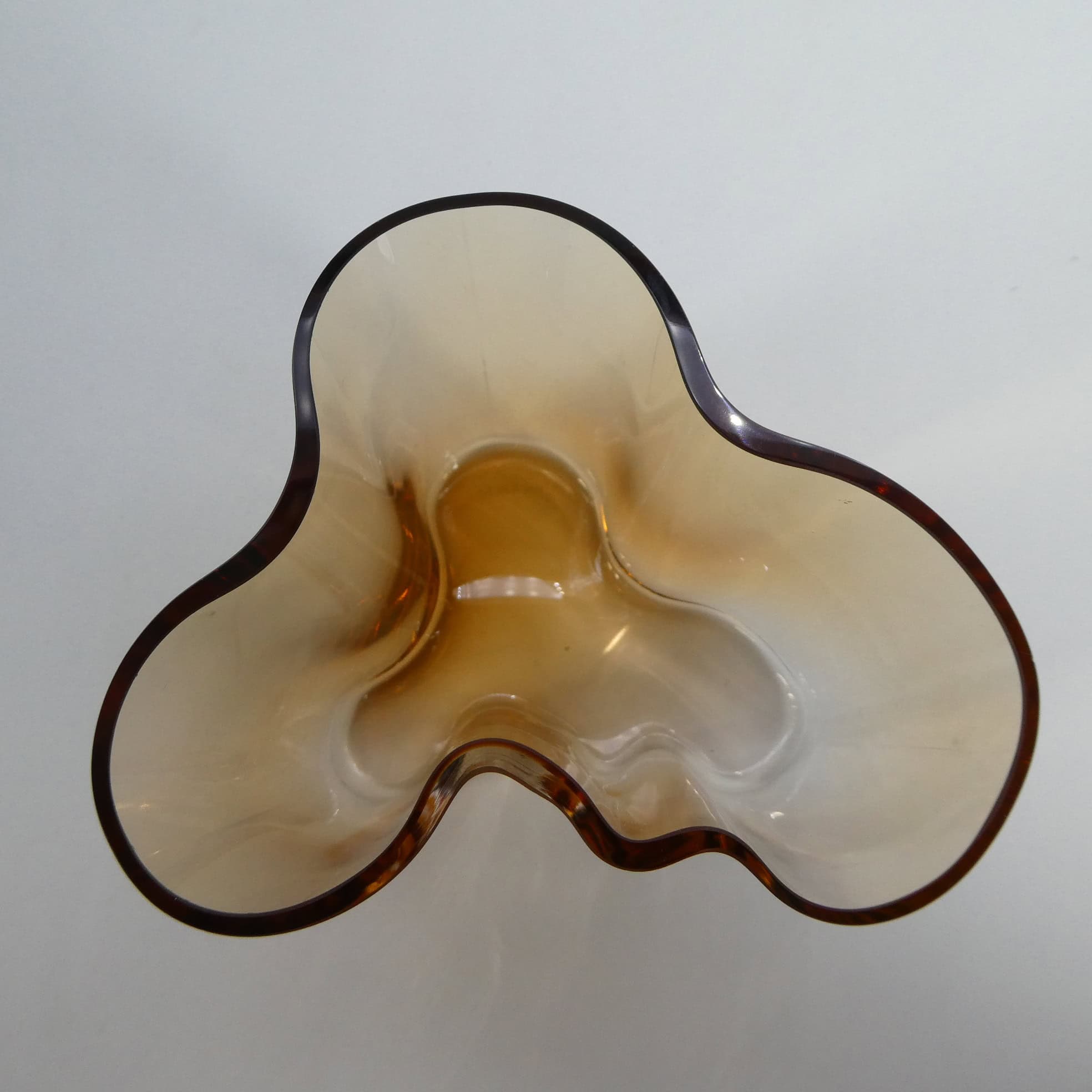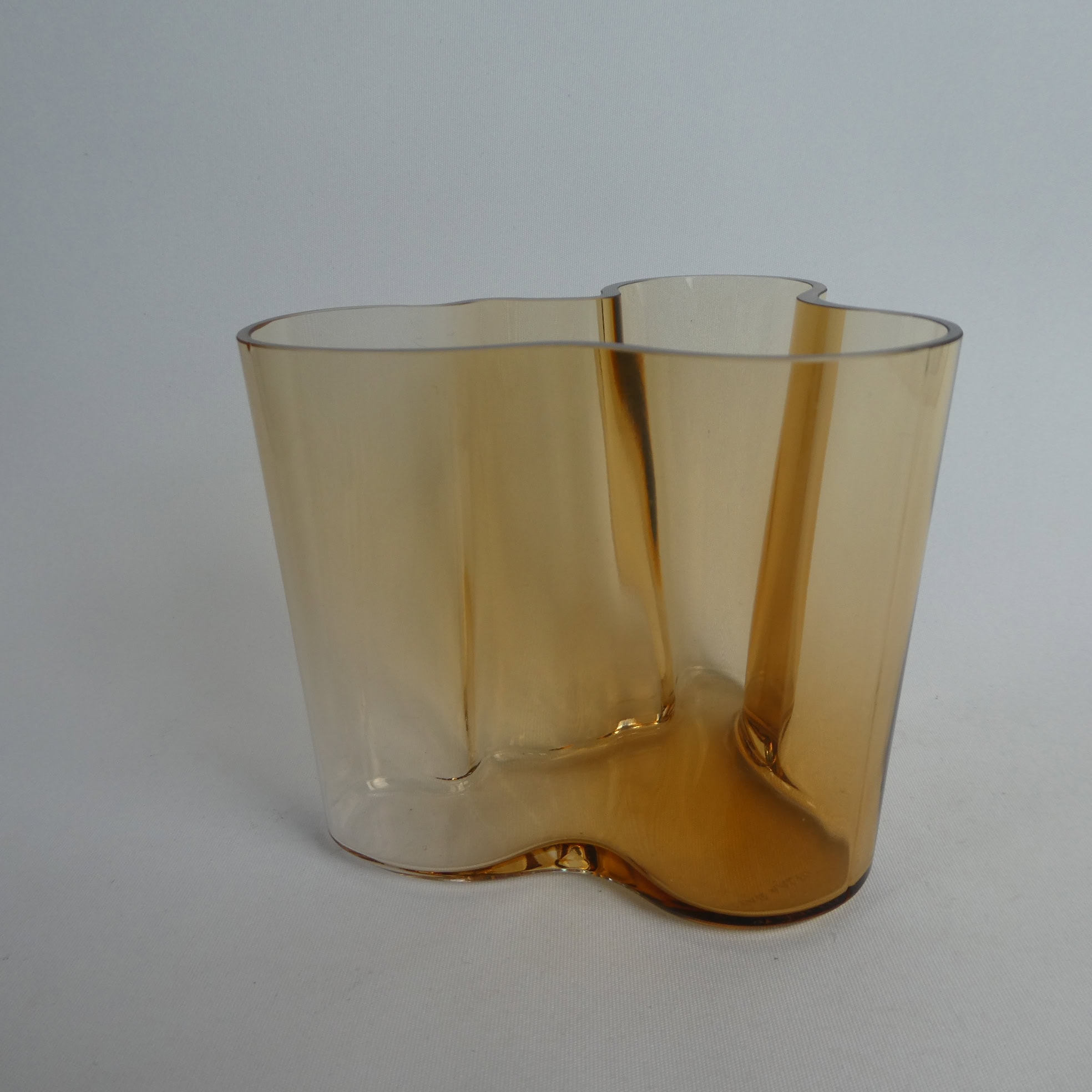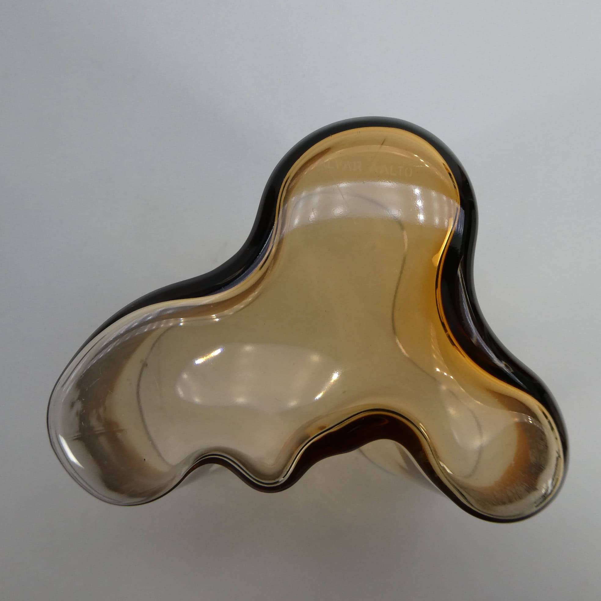 A rion brown Aalto vase designed by Alvar Aalto for Iittala. The height of the vase is 95 mm. The vase is intact and scratch-free. The vase bears a machine signature: Alvar Aalto. The vase for sale is in impeccable condition.