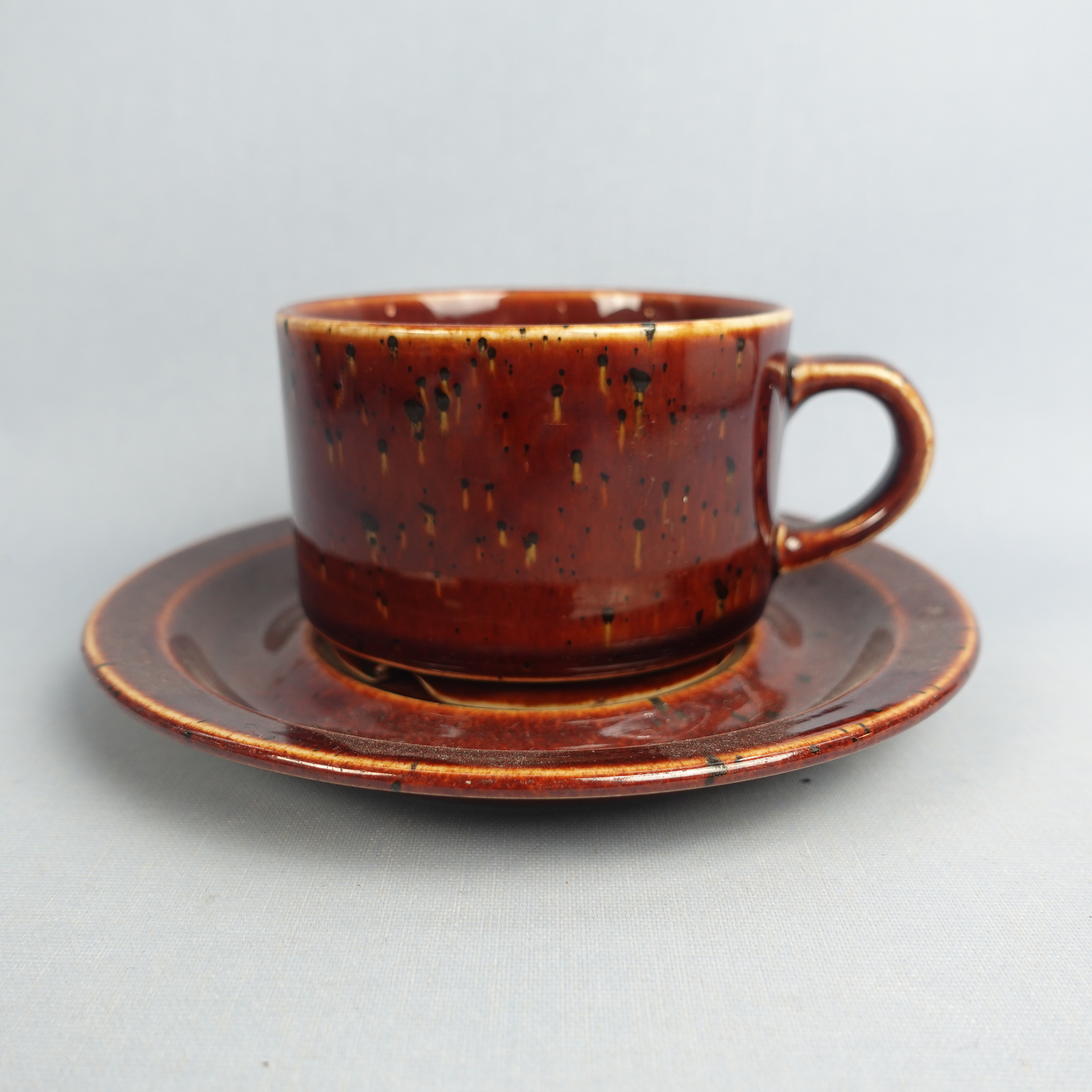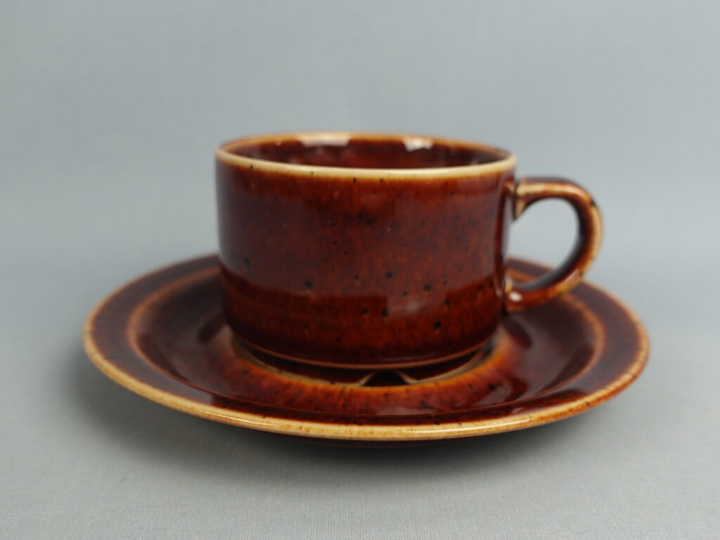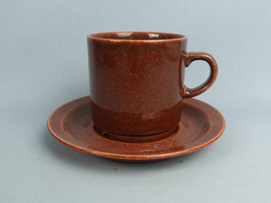 Cups of various sizes from the Krouvi series designed by Göran Bäck for Arabia. The series was produced in GB model containers from 1975-82. The cups for sale are intact and in otherwise good condition, almost unused. The decorations of the cups have some color differences.