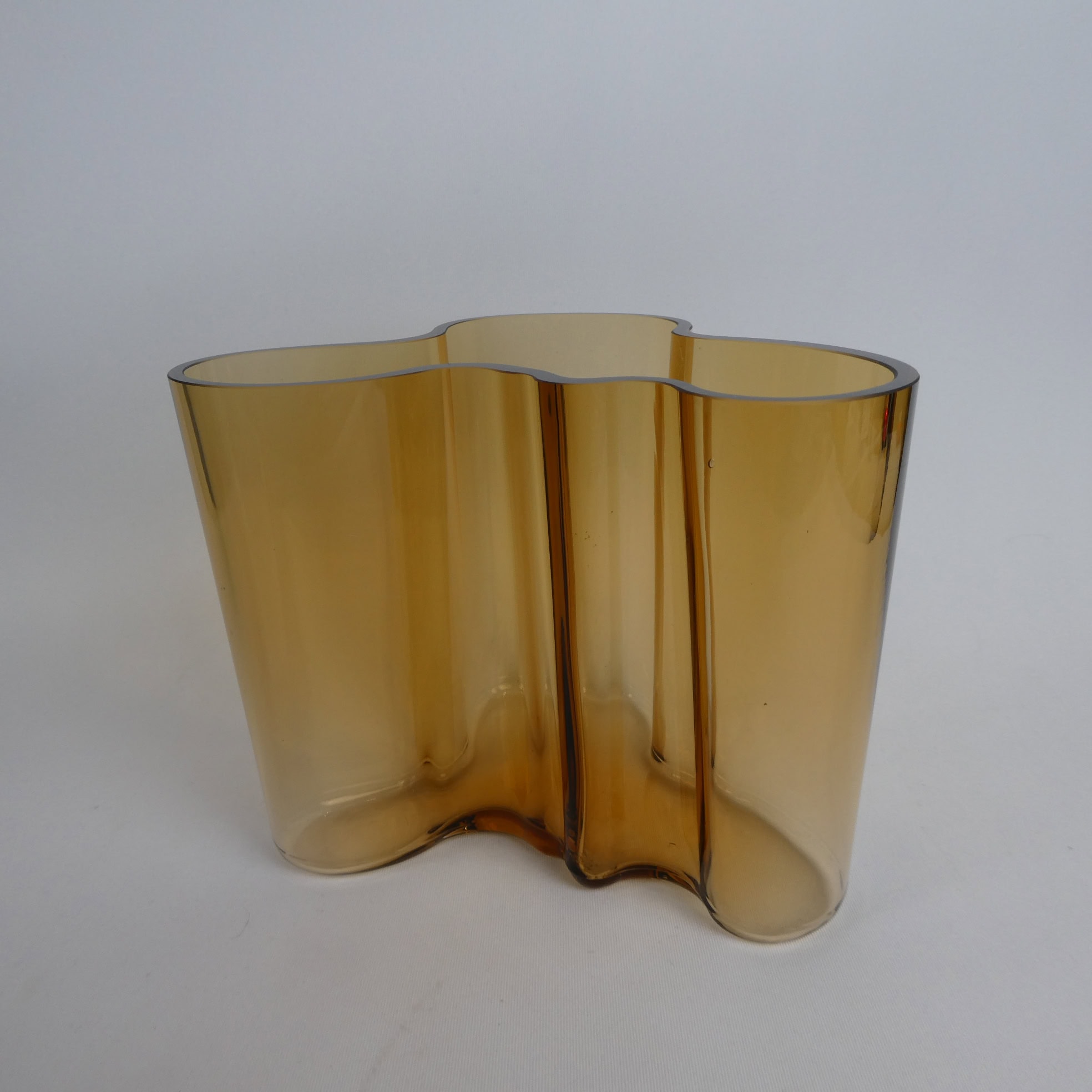 Alvar Aallon Iittalalle suunnittelema rion ruskea Aalto maljakko. Maljakon korkeus on 120 mm. Maljakko on ehjä ja naarmuton. Lasimassassa ainoastaan pari ilmakuplaa, muuten ei moitittavaa.