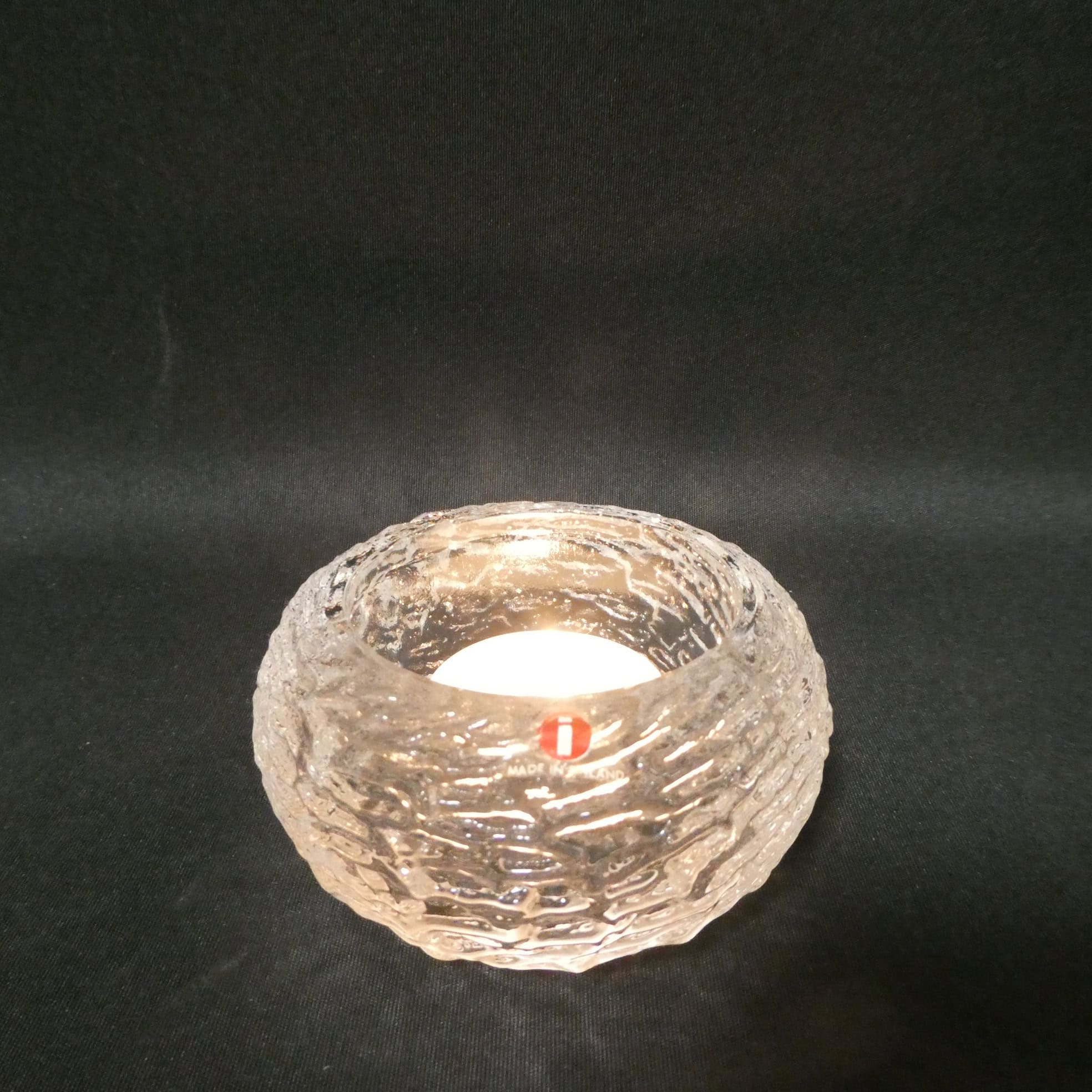 Iittalan valmistama Linnunpesä kynttilälyhty. Kynttilälyhty oli tuotannossa v. 1987. Kynttilälyhdyn korkeus on 40 mm ja halkaisija 85 mm. Myynnissä oleva kynttilälyhty on ehjä ja muutenkin hyväkuntoinen.