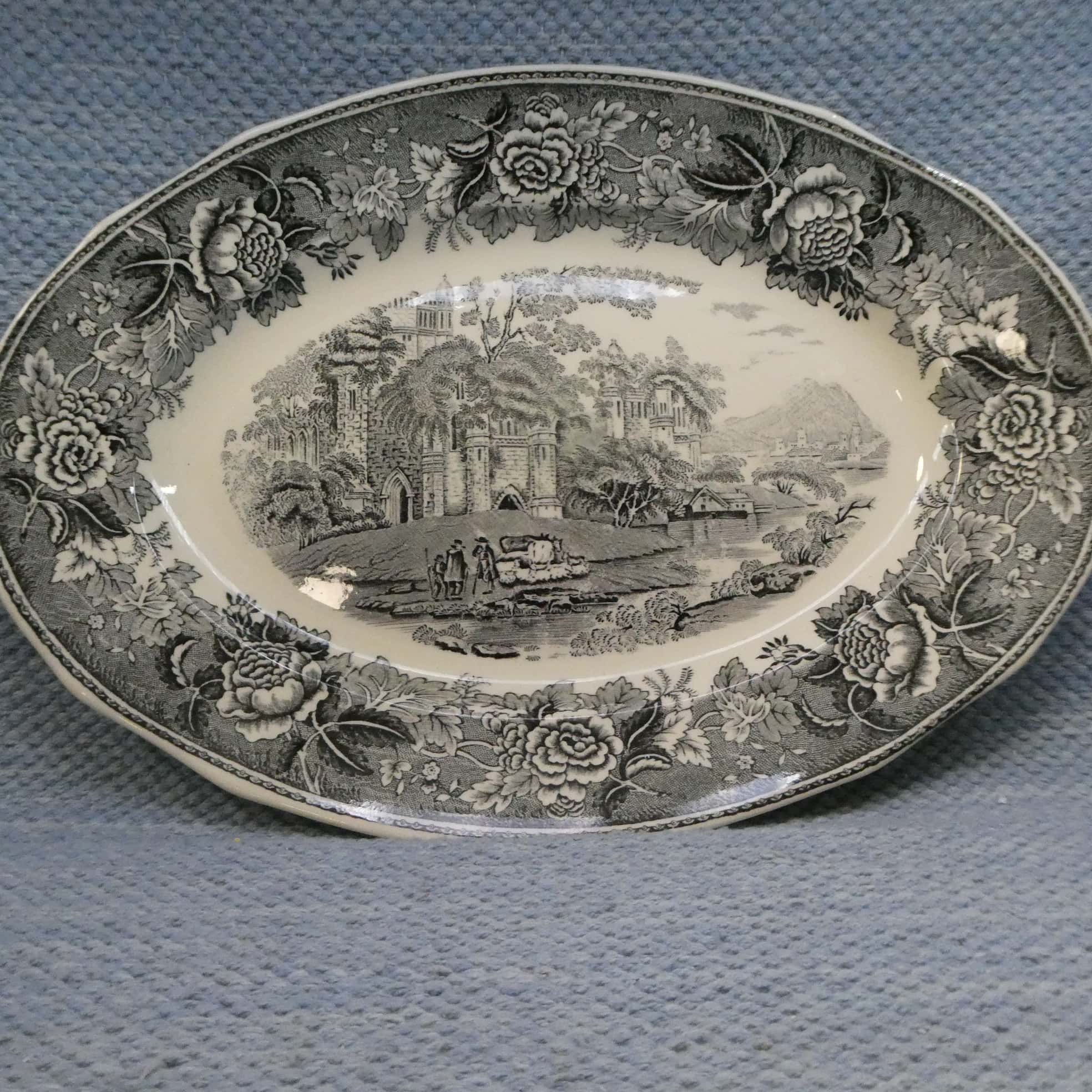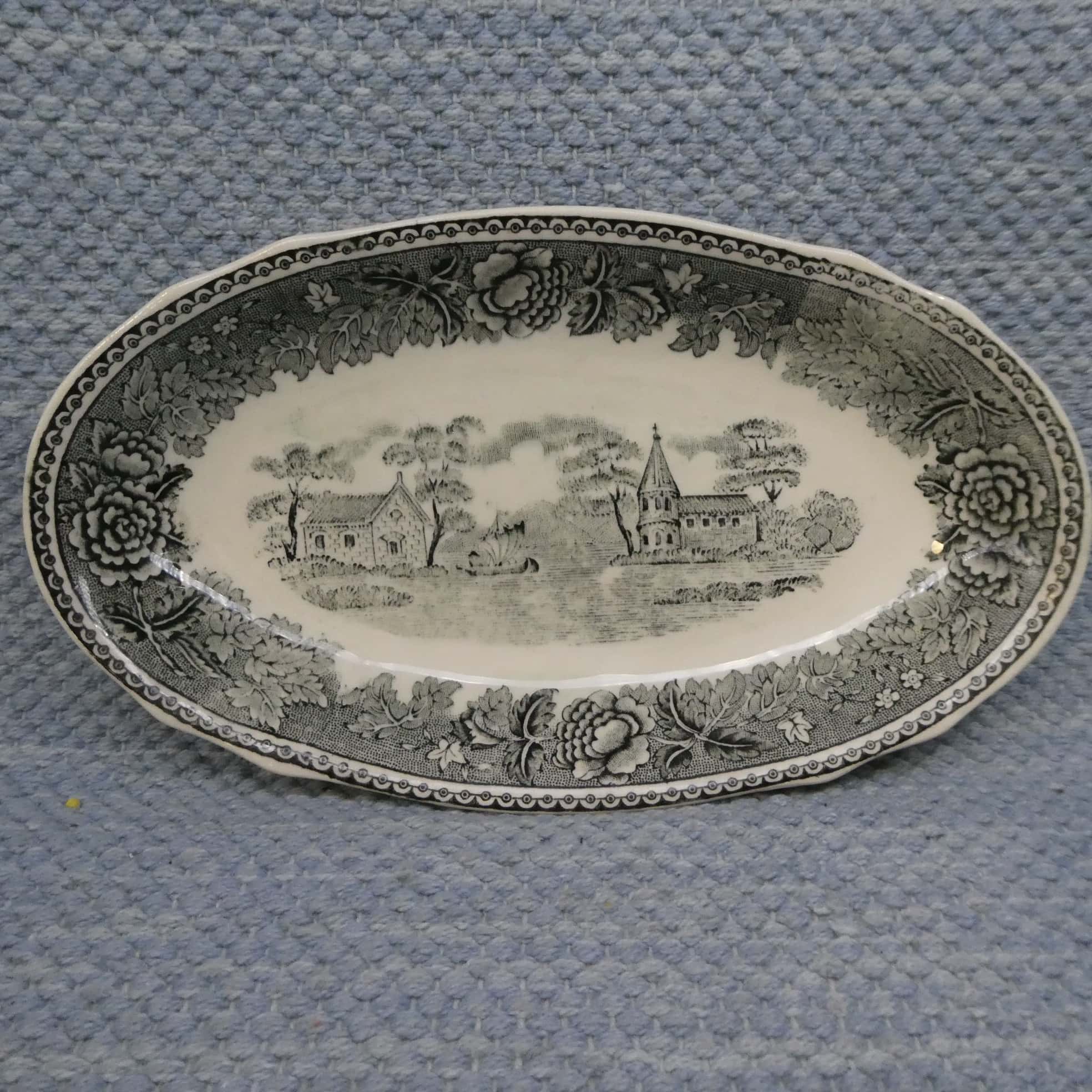 Arabian valmistamat piippuleimaiset mustanharmaat Maisema sarjan tarjoiluvadit ja kulhot.