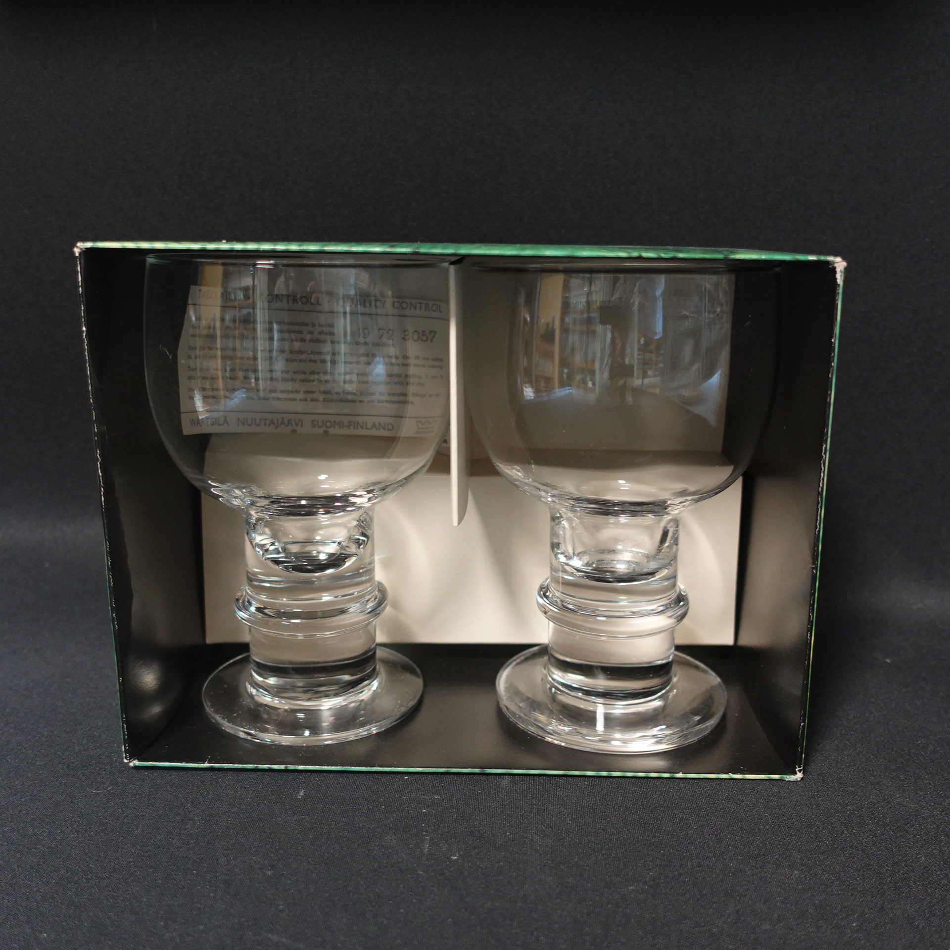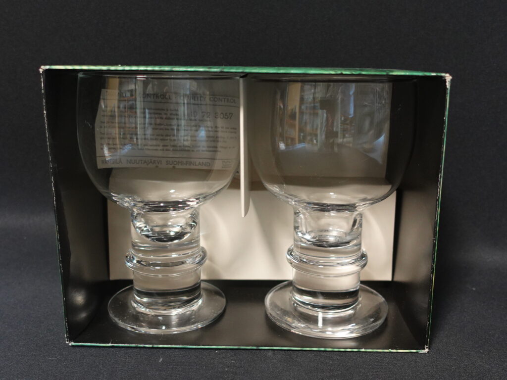 Heikki Orvolan suunnitteleman Herttua-sarjan olutlasi. Lasin korkeus on 15,5 cm ja halkaisija 9,5 cm. Lasin tilavuus on 5 dl. Sarja oli tuotannossa v.1972-91. Myynnissä olevat lasit on ehjiä ja muutenkin hyväkuntoisia. Lasit, jotka ovat 2 kpl pakkauksissa, ovat käyttämättömiä.
