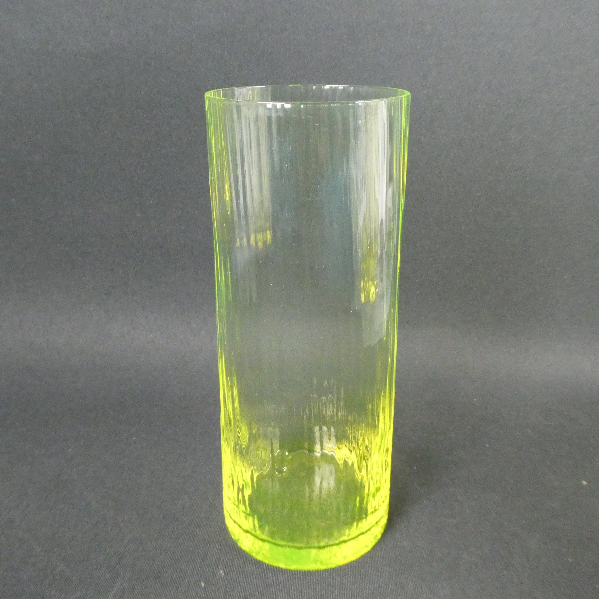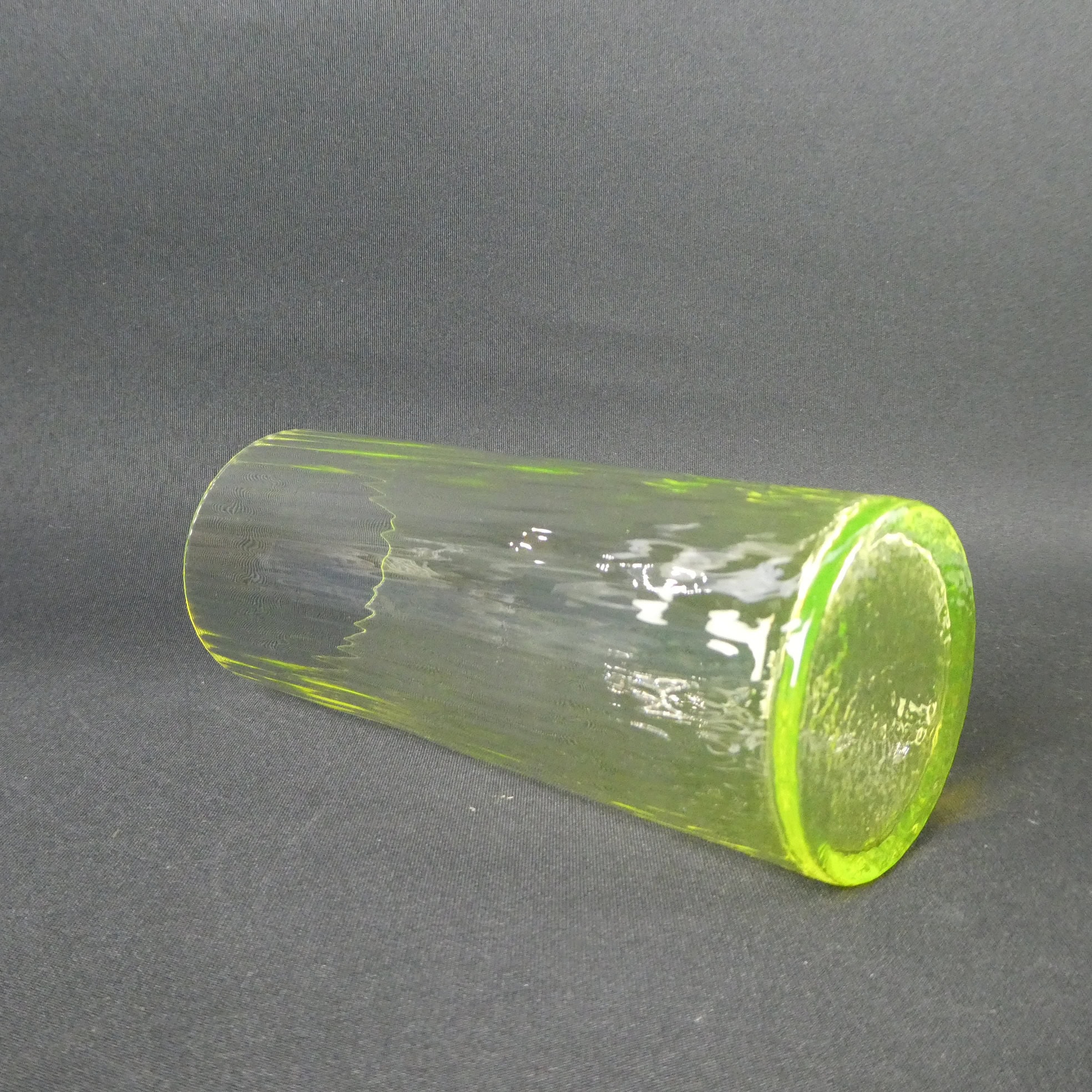 Nanny Stillin Riihimäen lasille suunnitteleman Neptuna-sarjan keltainen lasi. Sarja oli tuotannossa v. 1965-66. Lasin korkeus on 15 cm, halkaisija 6 cm ja tilavuus 28 cl. Myynnissä olevat lasit ovat ehjiä ja muutenkin hyväkuntoisia.